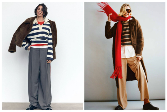 粗条纹或粗细不一的条纹上衣,自带美式的欢快节奏与学院派的气质。独特的纹理组合超显气质,无论是搭配挺括的大衣,还是毛茸茸的外套,都能营造出满满的冬日氛围感。