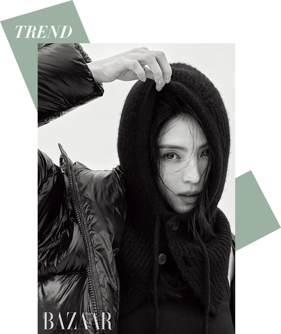 连帽卫衣、棒球夹克和开衫运动服,这些单品不但具有实用性与经典性,而且还能穿出随性的态度。韩素希在前一阵的韩版《Harper’s BAZAAR》中,她这身造型是一件简约的羽绒服,围上一条针织帽衫式围脖,独特的连帽设计瞬间提升了整体的个性指数,也打破了羽绒服固有的沉闷感。