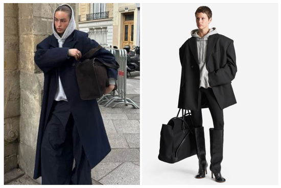 想把休闲的灰色连帽卫衣穿出强大的气场,可以选择一件肩线挺括的大廓形西装或大衣,利用外套的利落线条来中和卫衣的柔软堆积感,下装可搭配宽松长裤,或及膝长靴,整套look时髦又极具力量感。