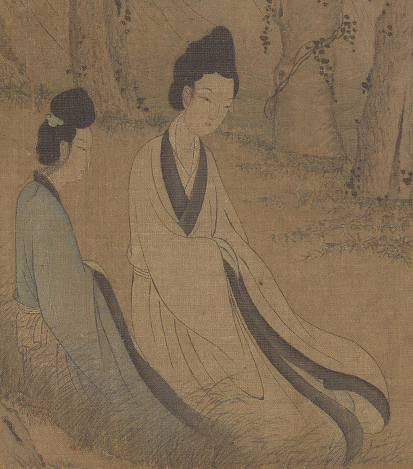 “湘君”“湘夫人”,是中国人物画中的重要画题。据《山海经》记载,尧帝有两个女儿娥皇、女英,姐妹俩一起嫁给舜为妻,辅佐舜帝。后来舜在南方巡视时,死于苍梧。二妃闻讯前往,泪染青竹,竹上生斑,因此称“潇湘竹”或“湘妃竹”。《九歌》中也有“湘君”“湘夫人”两篇,由于屈原未言明“湘君”“湘夫人”的来历,故而自秦汉以来舜与娥皇、女英的传说,逐渐和“湘君”与“湘夫人”的爱情神话混淆起来,即舜被认为是“湘君”,而娥皇、女英则为“湘夫人”。然而细心的人可以发现《九歌·湘夫人》中的“湘君”苦苦等待的“湘夫人”是一个人而非姐妹二人,另外按照清代乾嘉史学家钱大昕的《郊余丛考》“湘夫人”不是尧帝的两个女儿,而是“湘山之神”。
