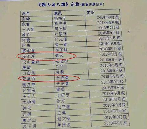 《新天龙八部》演员表曝光,小鲜肉挑大梁,佘诗曼聂远又演一对