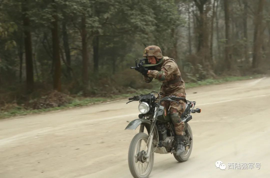 ▲摩托车行进间出枪训练
