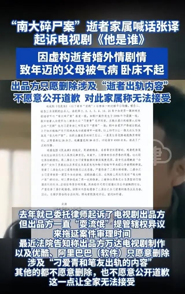 刚刚,针对“南大碎尸案逝者家属喊话张译”的热搜,出品方、播出平台等多方作出回应。