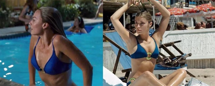 题材敏感大胆,但昆丁在还原的过程中,只有细思极恐的用心。影片中,“小丑女”玛格-罗比饰演波兰斯基的妻子莎朗。其中一幕,她穿着泳衣出镜,看似不经意的造型,恰恰是1968年出席戛纳电影节期间,莎朗被定格瞬间的同款。