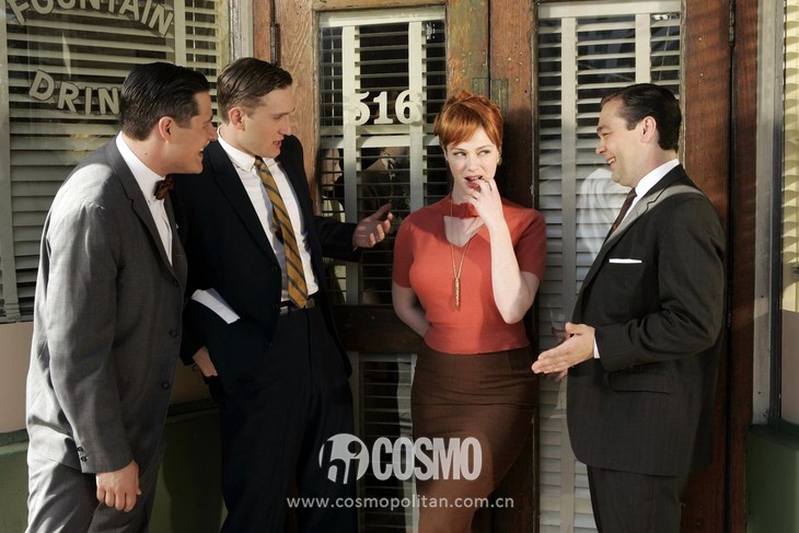 在这部讲述曼哈顿广告业尔虞我诈的美剧中,女性角色从不重复的着装,很抢戏。为了做到极致还原,负责全剧造型的Janie Bryant收集了大量当年的各国时尚杂志,还翻遍祖母衣橱,从剪裁到材料,她都不放过。第一季中,那件摩洛哥蓝连衣裙,正是外婆在1962年为Bryant母亲手工缝制的订婚礼服。