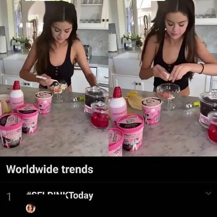 其实在这个跨次元的单曲公布之前,Selena就已经在ins上预热很久了,还和纽约著名甜品餐厅Serendipity 3合作拍摄了小视频,上演私房冰激淋教学。