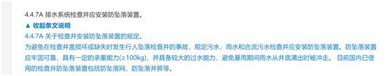 其中指出,安装防坠落装置的目的之一就是避免发生行人坠落检查井的事故,同时,对防坠落装置的承重能力等方面也做了规定。