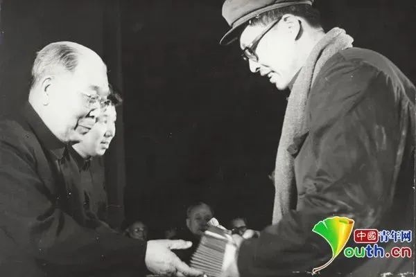 1981年,中国科学院研究生院首届研究生毕业典礼上,严济慈为学生颁发毕业证书。中国科学院大学供图