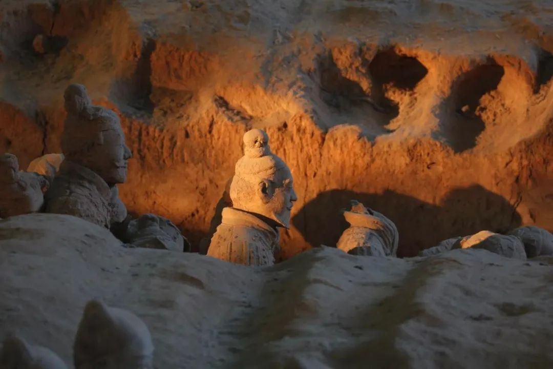 惊喜远不止于此。每年兵马俑都会“复活”一次。所谓的复活,是光与影的功劳。铅灰色的文物在阳光下瞬间变得流光溢彩,如获新生。