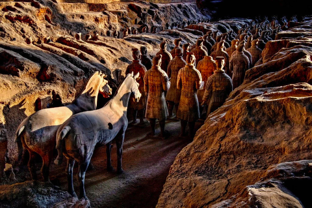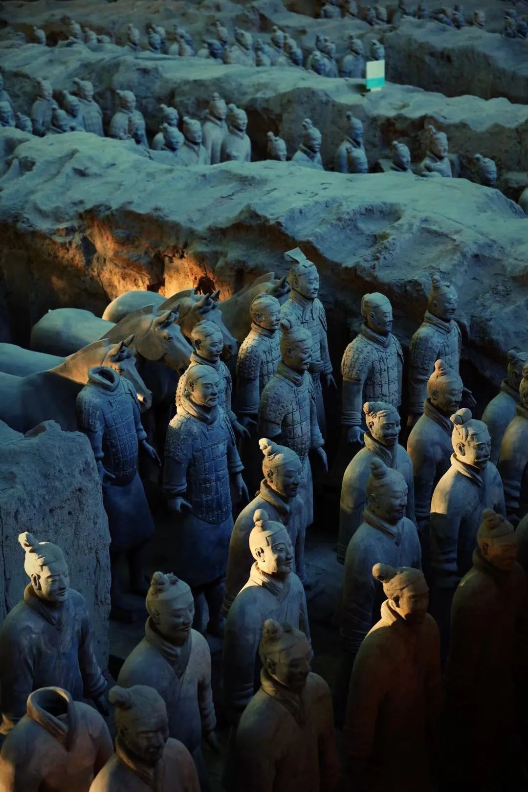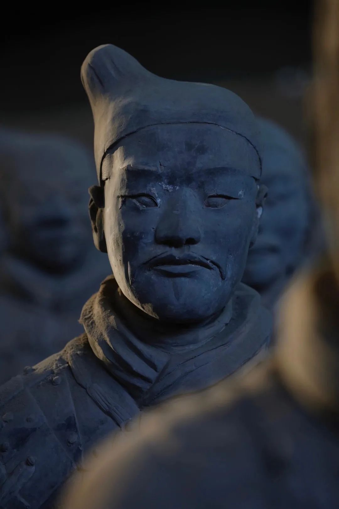 秦俑坑严禁使用闪光灯,到了十二月末,自然天光特有的角度洒在兵马俑脸上,铅灰色的面庞在映照下变得五彩斑斓,栩栩如生。那时,这支沉默的军队,“不动如山,动则如火掠林”。马蹄声厮杀声重新回来了。