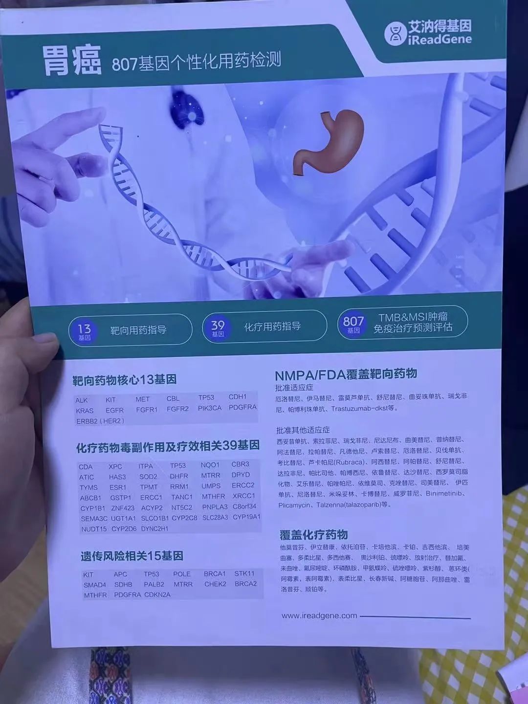 马进仓的姐姐,也就是马荣的姑姑同样罹患胃癌,彼时经人介绍,在上海某三甲医院接受诊疗。当年7月1日,马进仓一家人也来到这里。第二天,他们见到了治疗医师——该院普外科的陆姓医生。据马荣称,当时陆姓医生就联系外公司给马进仓做了NGS基因检测,即二代测序技术,价值18600元。