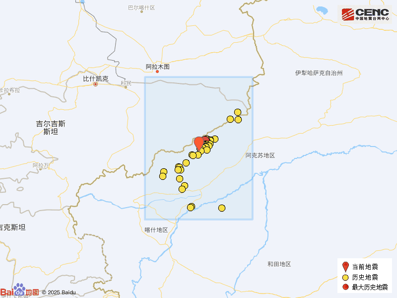 附近村镇:本次地震周边5公里内的村庄有喀拉塔拉,20公里内的乡镇有阿合奇镇。