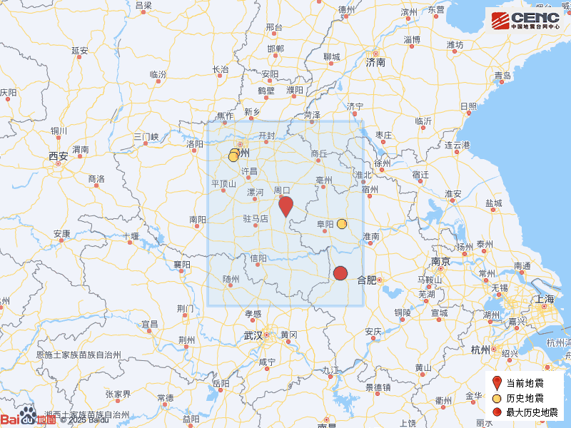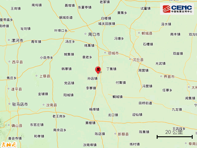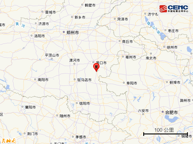 中国地震台网正式测定:河南周口市项城市发生2.9级地震