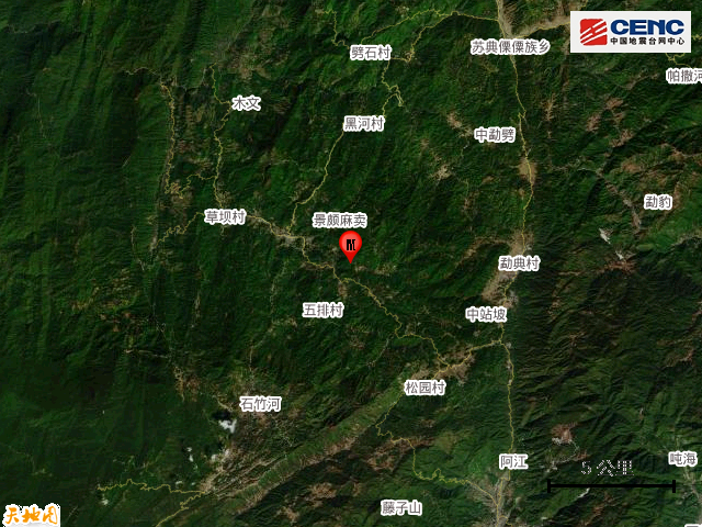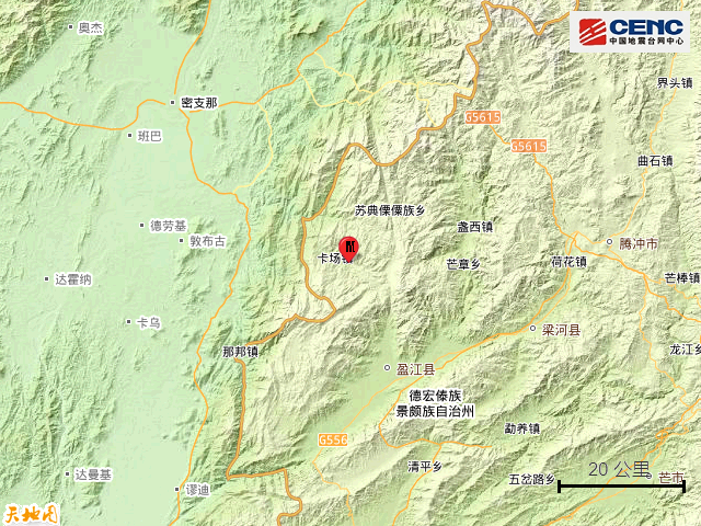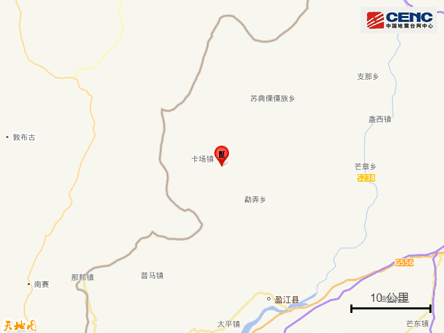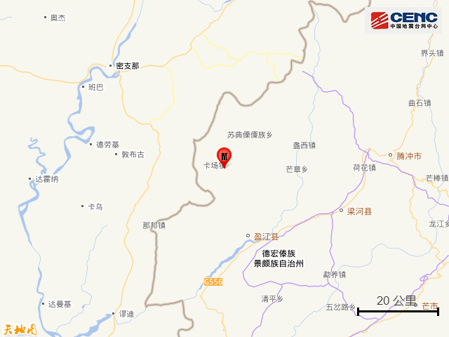 附近村镇:本次地震周边5公里内的村庄有汉族新朗、卡场村、五排村、五帕村、卡练、桥头寨、新朗、汉族新朗、新卡练、傈僳新朗,20公里内的乡镇有卡场镇、勐弄乡、苏典傈僳族乡。