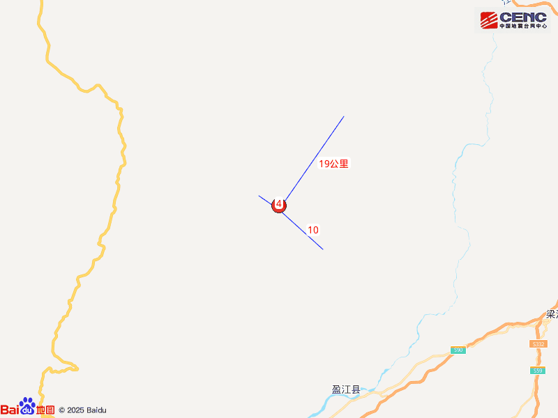 速报参数:据中国地震台网正式测定,12月25日23时19分在云南德宏州盈江县发生3.9级地震,震源深度10公里,震中位于北纬24.97度,东经97.84度。