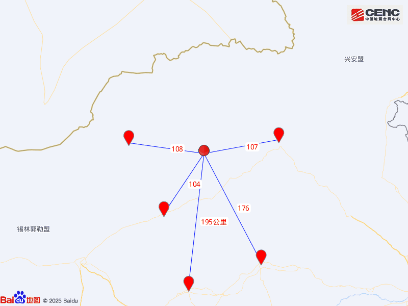 周边县城:震中距西乌珠穆沁旗104公里、距霍林郭勒市107公里、距东乌珠穆沁旗108公里、距巴林左旗176公里、距林西县195公里,距锡林郭勒盟241公里,距沈阳市568公里。