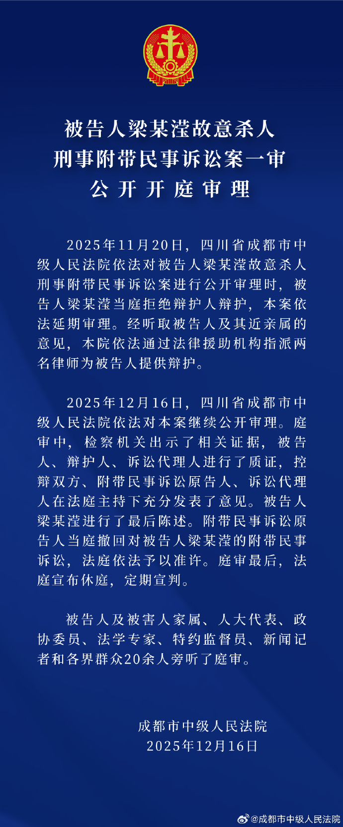 被告人梁某滢故意杀人刑事附带民事诉讼案一审公开开庭审理