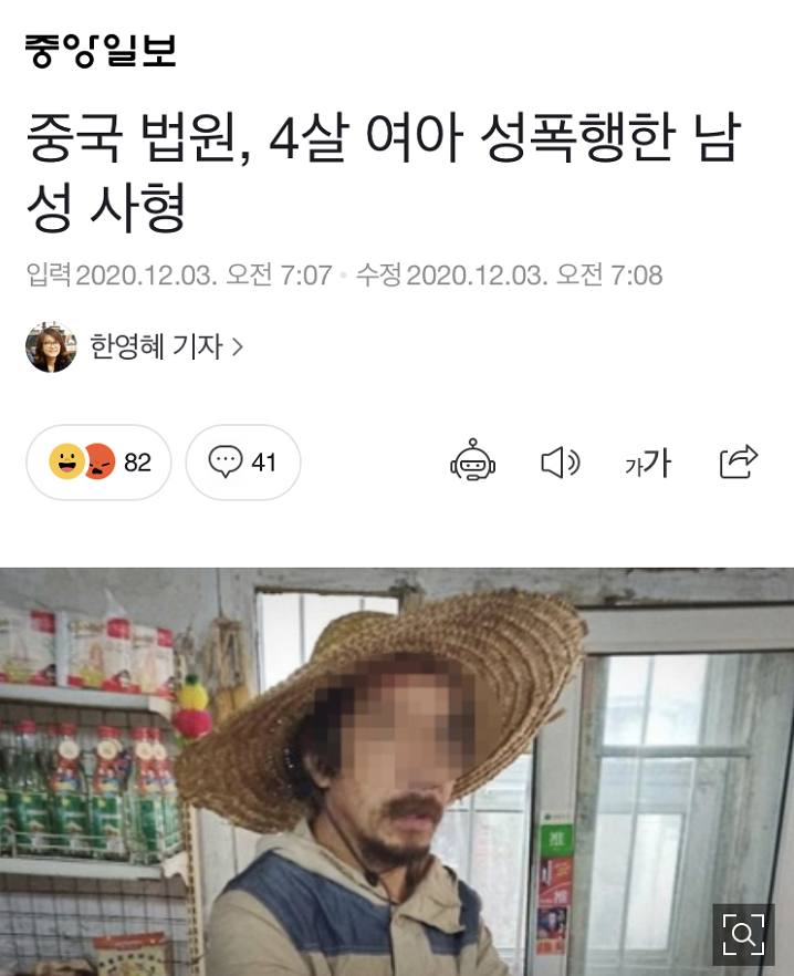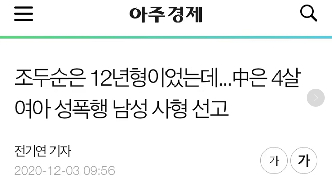 韩国《亚洲经济》:赵斗顺被判12年,中国性侵4岁女童男性被判死刑