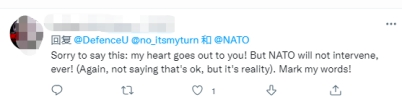 还有网友直接提醒乌克兰,“北约是不会干预的”。