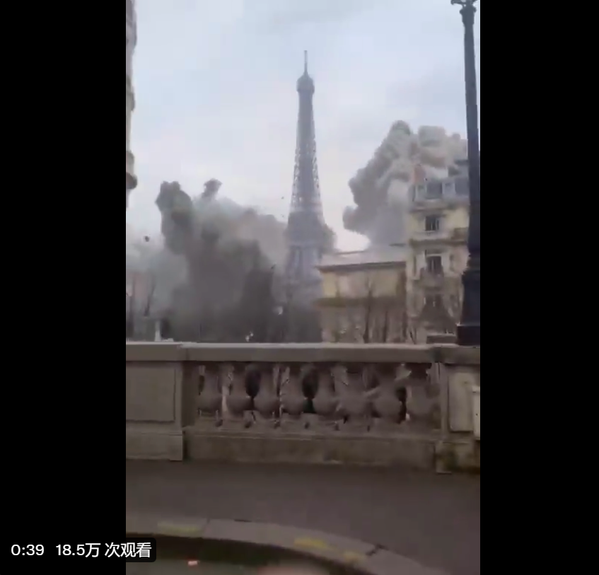 视频中那个高耸的铁塔,是不是很眼熟?包括乌克兰和英国媒体在内的外媒报道都指向了一个著名景点——巴黎埃菲尔铁塔。