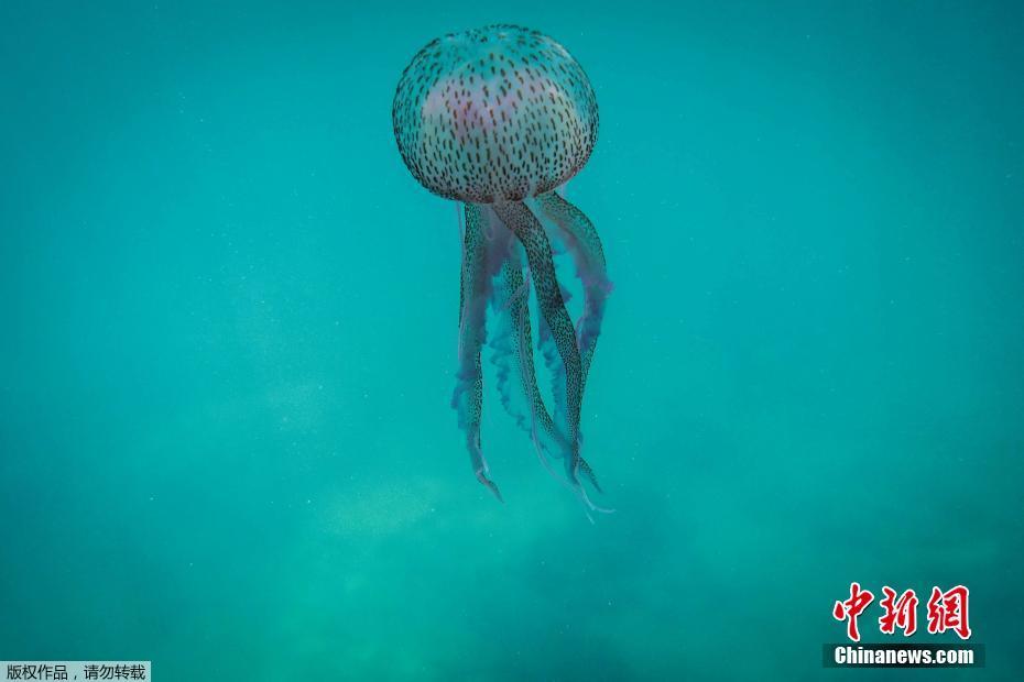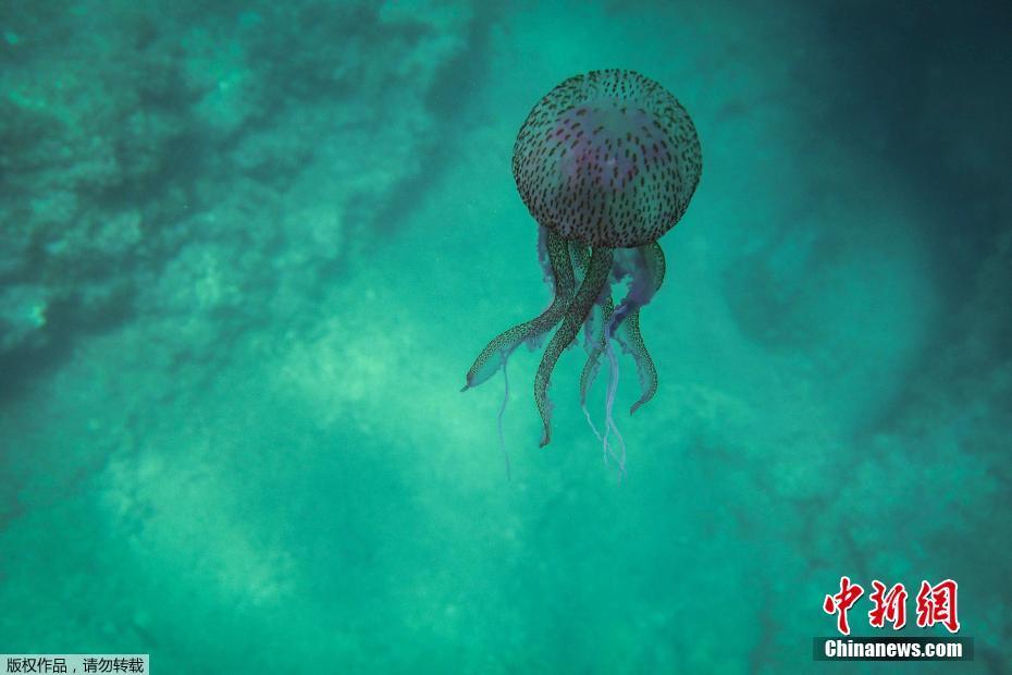 当地时间2020年5月27日,黎巴嫩北部城镇Qalamun,实拍当地海域的夜光游水母,这种水母广泛分布在包括地中海、红海和大西洋等水域。