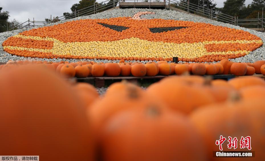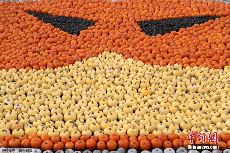 英国农场南瓜丰收 展出巨型作品“戴上口罩”