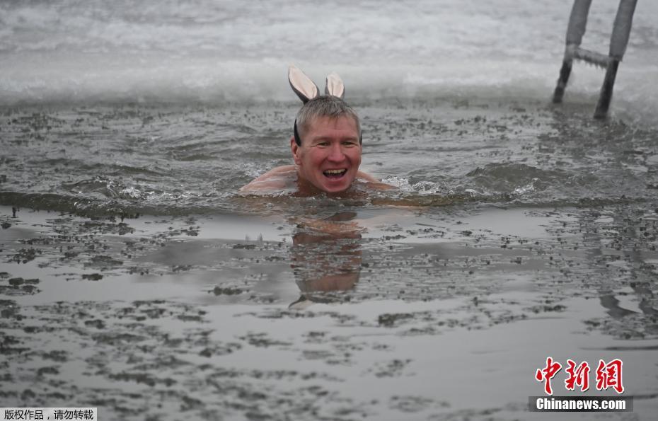 不惧严寒!俄罗斯民众冰洞中冬泳
