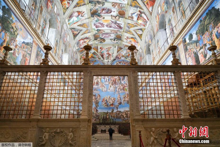 当地时间2月1日,梵蒂冈博物馆在关闭88天后,重新对比游客开放。图为梵蒂冈博物馆馆长“克拉维格罗”钥匙保管者吉安尼·克雷亚在西斯廷教堂。