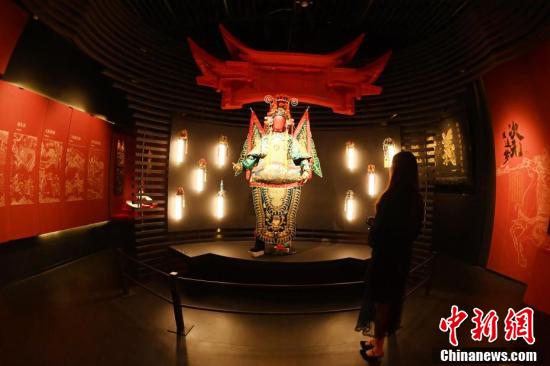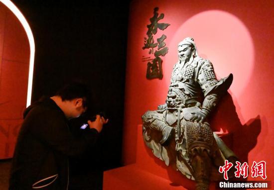 3月31日,历时近两年策划筹备的《大三国志展》在成都武侯祠博物馆开展。图为展厅展出的身着战袍的关羽形象。 中新社记者 安源 摄