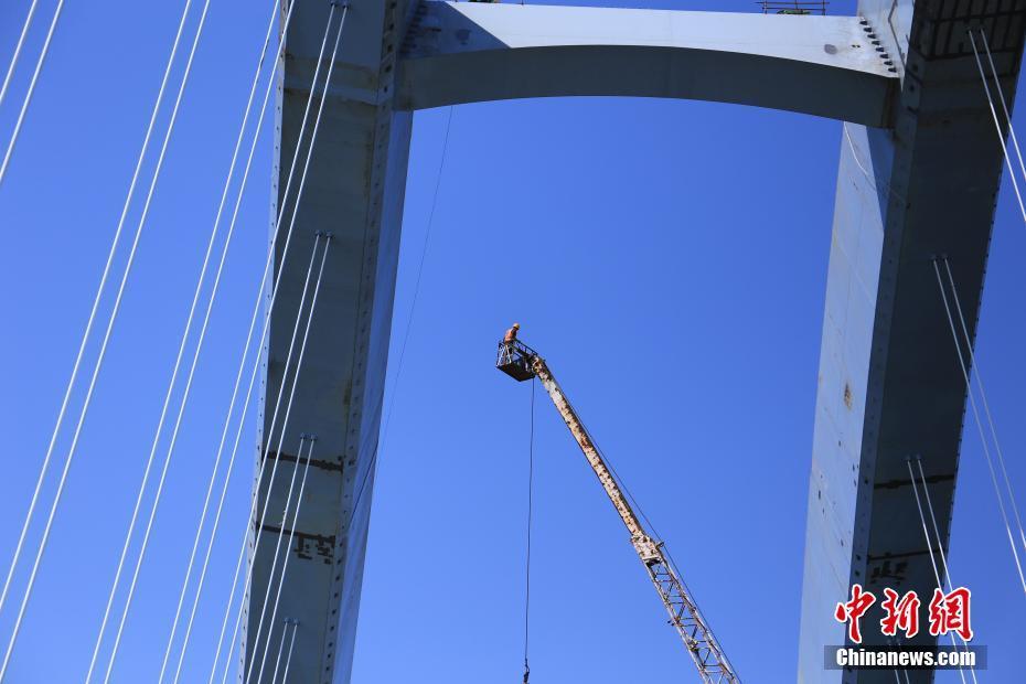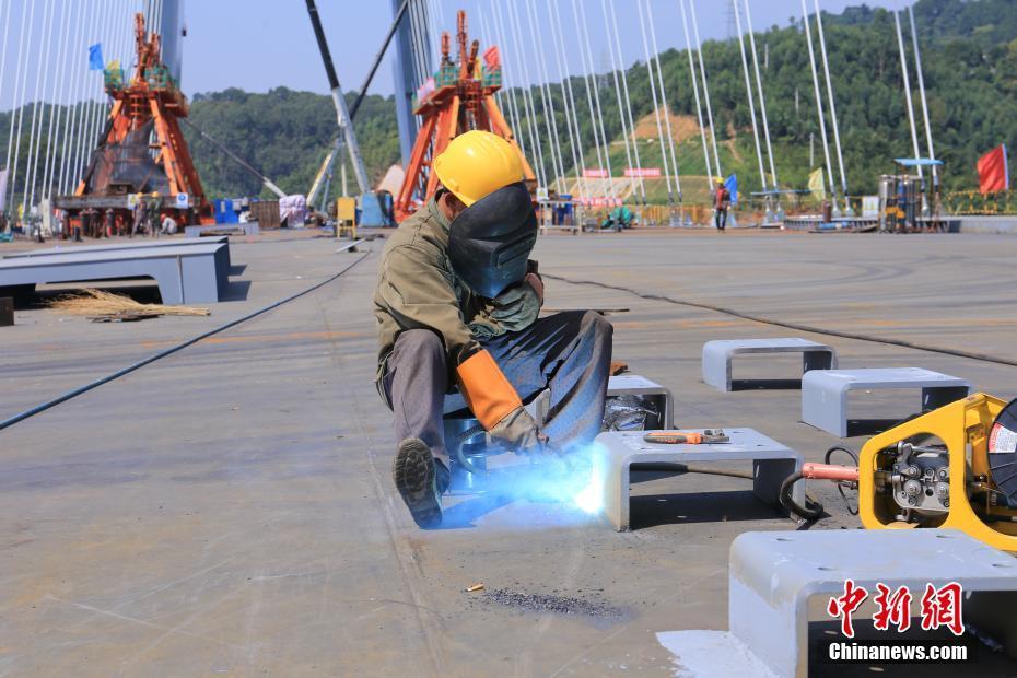 工人正在桥面进行焊接作业。文/谢耘 邱银 邱贺金 图/谢耘