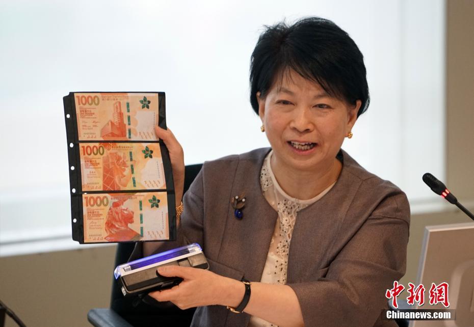 12月11日,香港金融管理局及三家发钞银行公布,2018新系列1000港元钞票将于12月12日正式上市流通,500港元新钞将于明年1月23日起流通。市民可从发行当日起在三家发钞银行兑换新钞。图为香港金管局主管(货币与结算)陈叶小明讲解1000元新钞的防伪新特征。中新社记者 张炜 摄