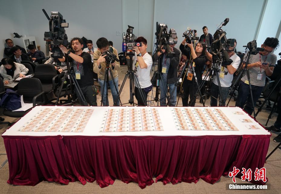 12月11日,香港金融管理局及三家发钞银行公布,2018新系列1000港元钞票将于12月12日正式上市流通,500港元新钞将于明年1月23日起流通。市民可从发行当日起在三家发钞银行兑换新钞。图为媒体记者拍摄整版的新钞票。中新社记者 张炜 摄