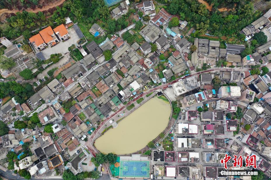 2月24日,俯瞰鳌湖老村。鳌湖老村是深圳市龙华区一座有着百年历史的客家村落,2012年,一群艺术家们相继走进这里进行创作,自发形成了鳌湖艺术村。此后,政府开始介入,推动发展。鳌湖艺术村现已驻扎六七十名艺术家,其中以深圳本土艺术家为主,加以少数北京、广州、香港等地的艺术家,甚至吸引了美国、加拿大的艺术家驻留。中新社记者 陈文 摄