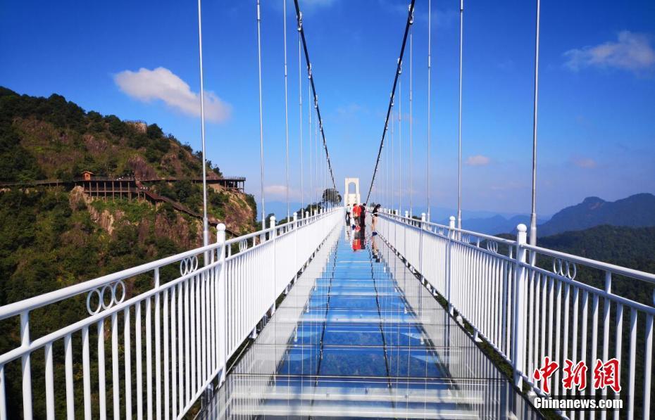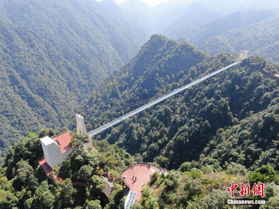 江西省安远县三百山玻璃索桥全长330米,最高落差200米,桥面均为全透明玻璃,在巍巍群峰中悬空而立。 王剑 摄