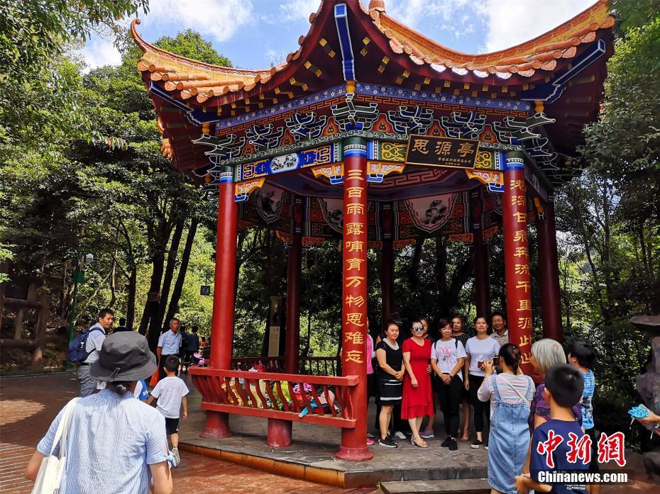 2019年8月24日,改造后的江西省安远县三百山景区重新开放试营业中,为纪念香港回归十周年建造的“思源宝鼎”、香港同胞捐建的“思源亭”等景观焕然一新后重新迎客,不少游客排队打卡合影留念。三百山是粤港居民饮用水东江的源头,是全国对香港同胞具有饮水思源纪念意义的胜地。 王剑 摄