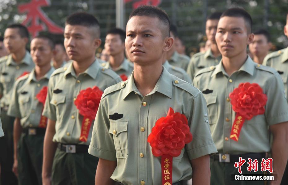 图为退役士兵参加退役仪式。 郭大伟 摄