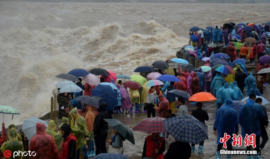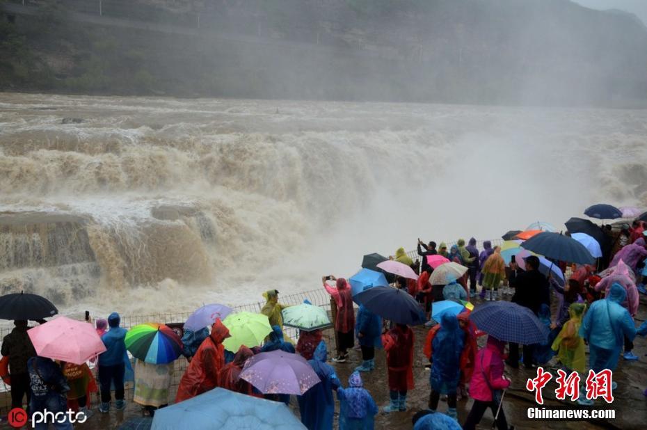 受降雨天气影响 山西黄河壶口瀑布水量大增游人如织
