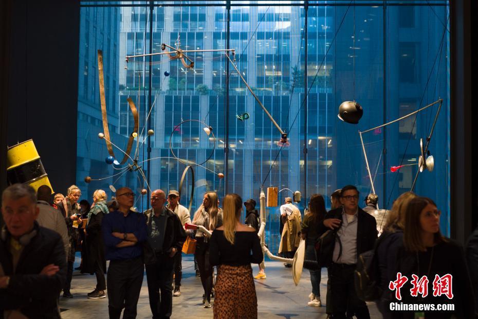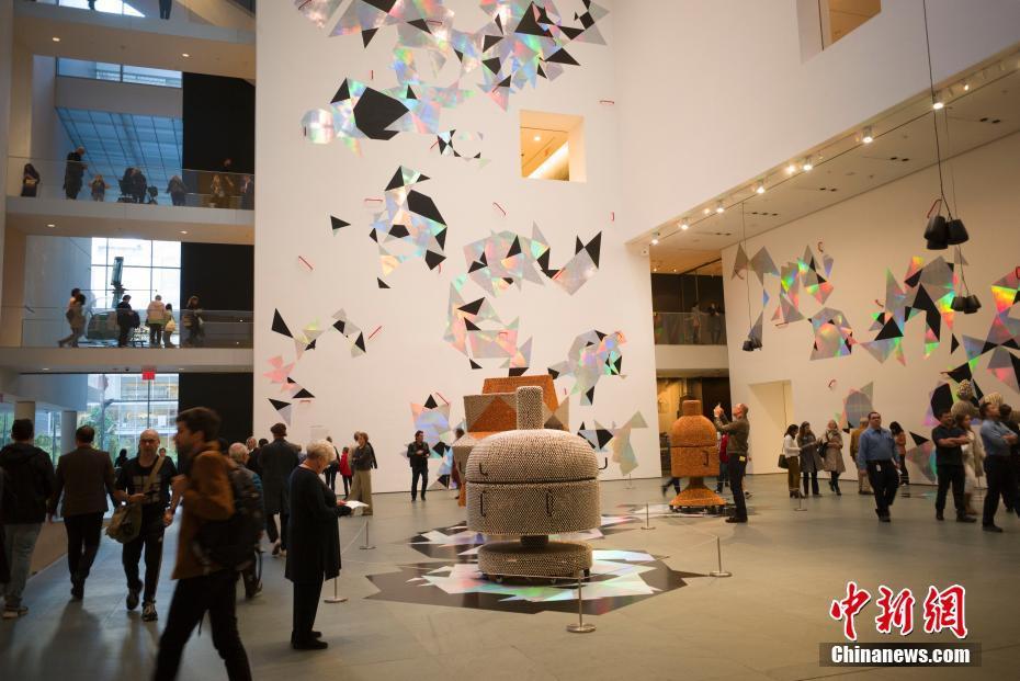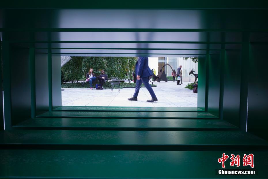 当地时间10月21日,纽约现代艺术博物馆经过4个月花费约4亿美元的扩建翻新后于当日面向公众重新开放。纽约现代艺术博物馆(简称MOMA),坐落在纽约曼哈顿,是当今世界最重要的现当代美术博物馆之一。图为一件装置作品吸引参观者。中新社记者 廖攀 摄