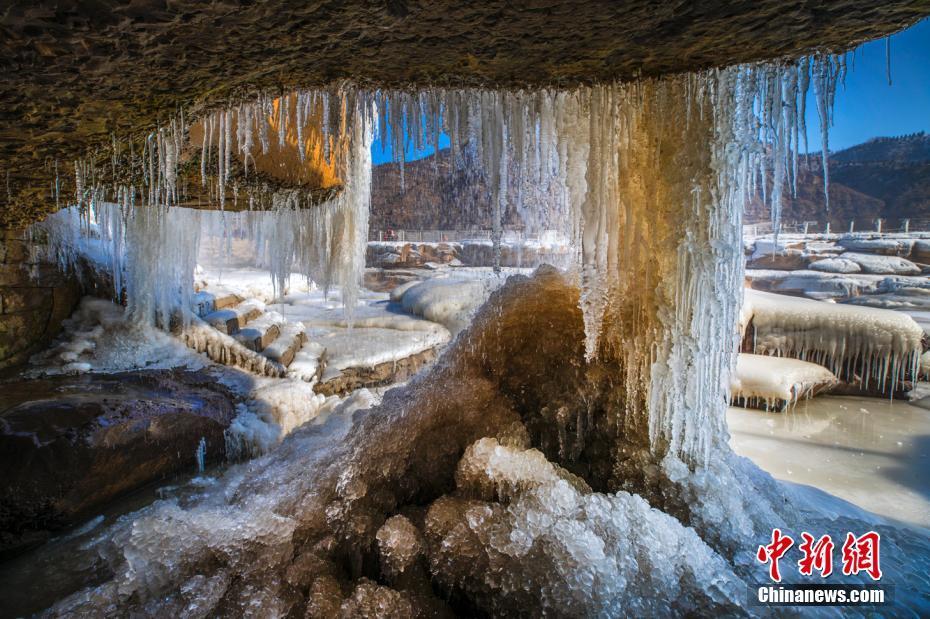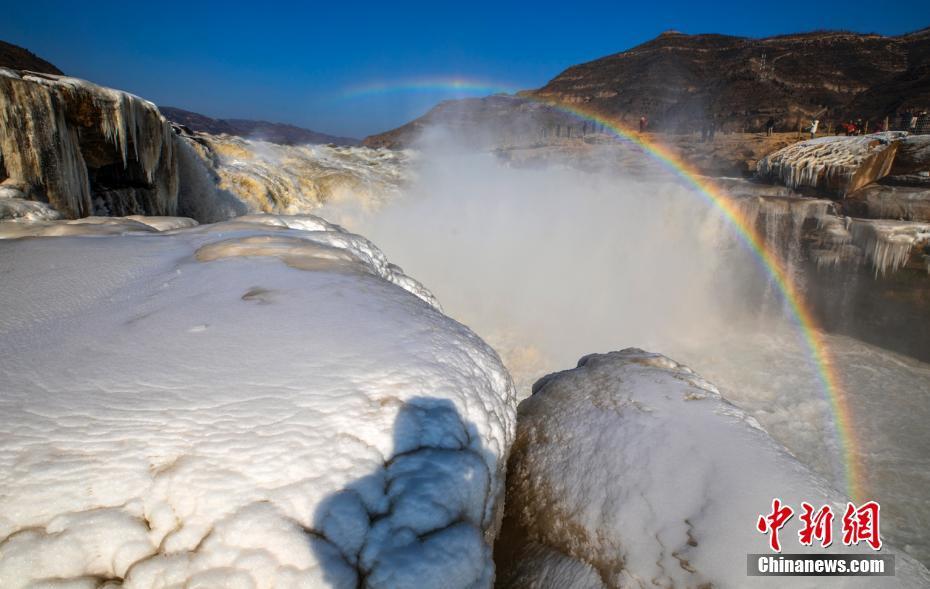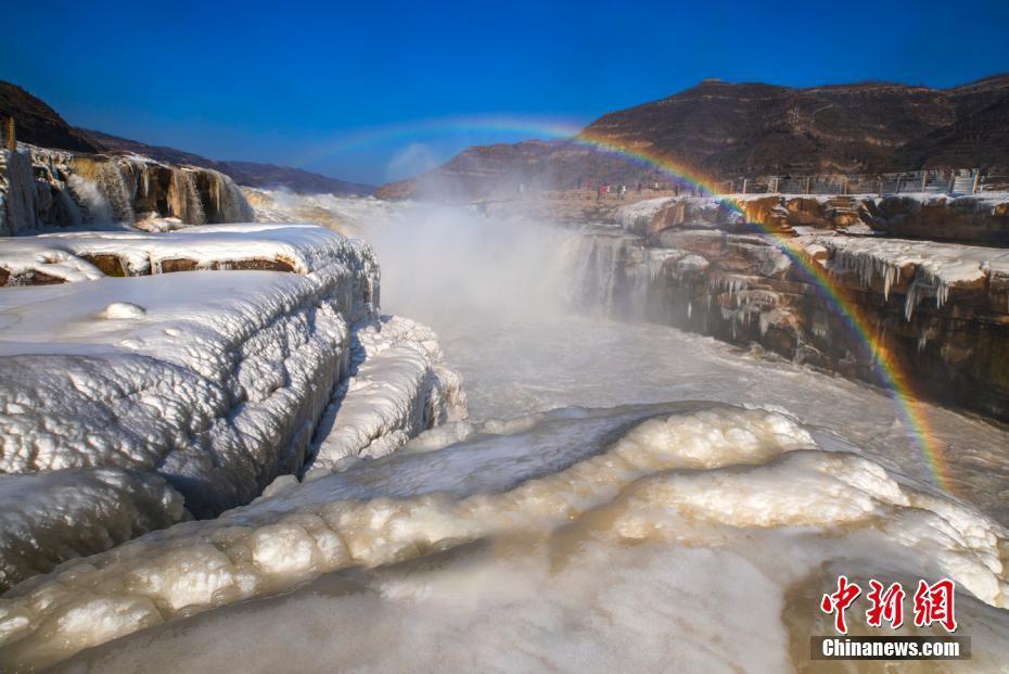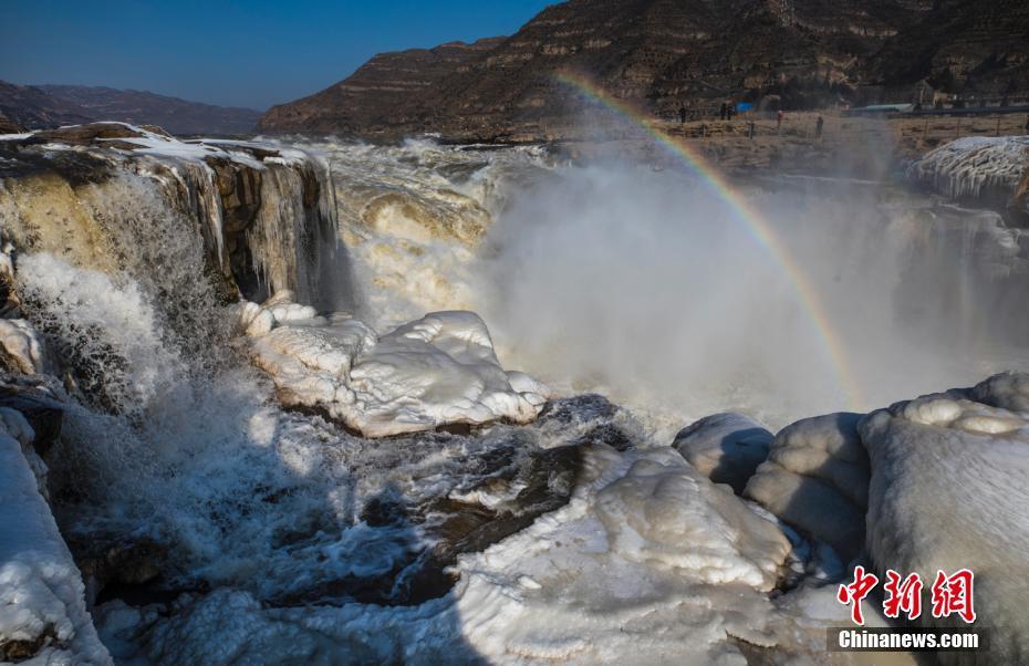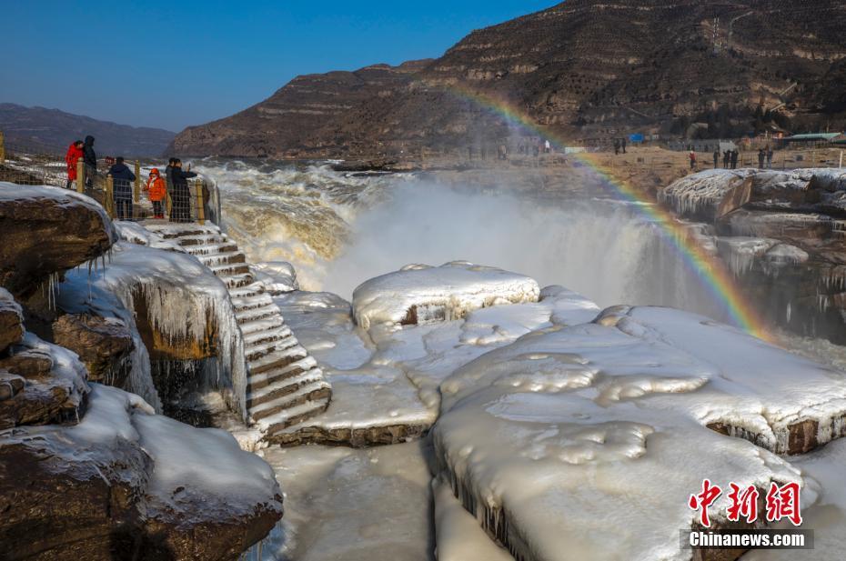 黄河壶口瀑布晶冰伴彩虹蔚为壮观