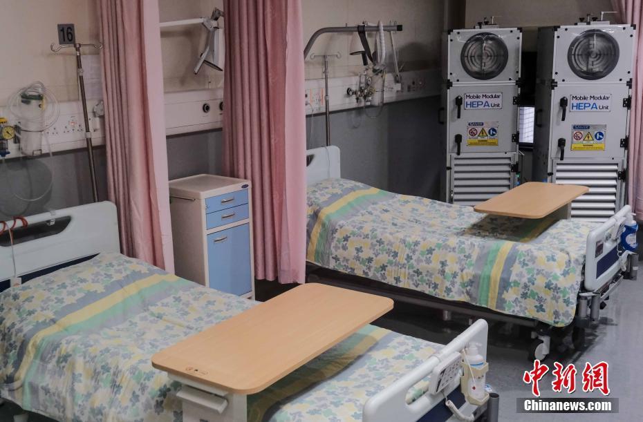 3月31日,香港东区医院安排传媒参观将于4月1日起陆续启用的“第二线隔离病房”。“第二线隔离病房”由2个内科病房改装而成,合共提供约50张病床,病房内加装了高效能粒子过滤器及加强通风抽气设施,以确保病房空气不会外流。中新社记者 秦楼月 摄