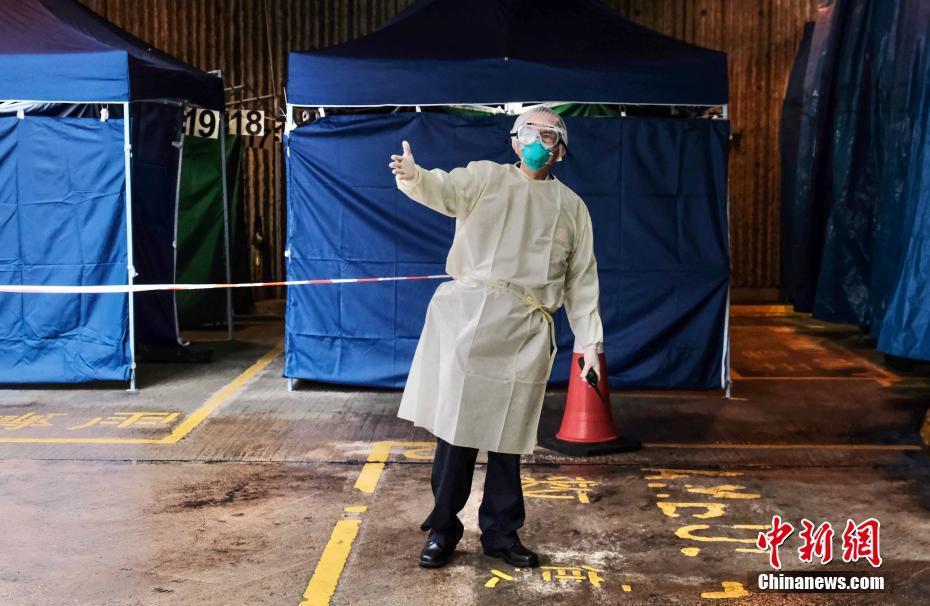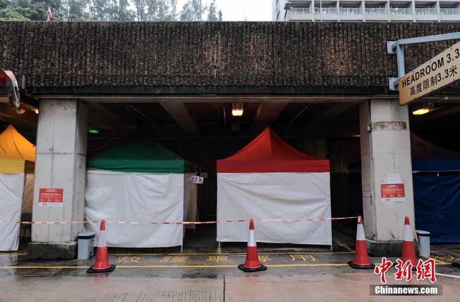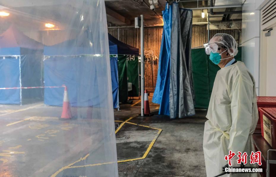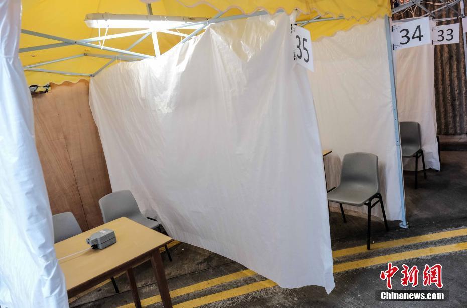 3月31日,香港东区医院安排传媒参观将于4月1日起陆续启用的“第二线隔离病房”。图为香港东区医院急症室外设立分流检测站。病人可在检测站进行新型冠状病毒检测,若呈阴性即可回家,无需住院等候检测结果。中新社记者 秦楼月 摄
