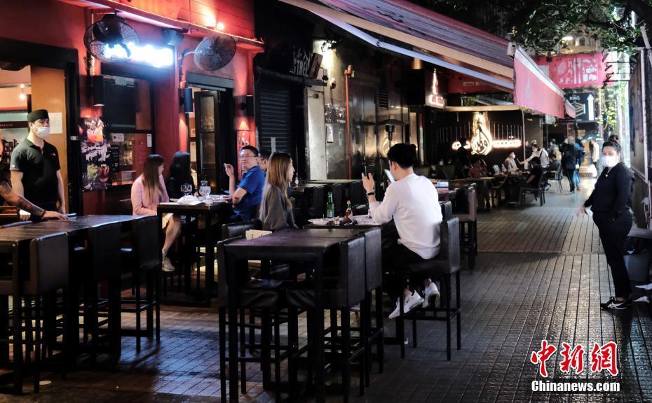 4月2日晚上,香港尖沙咀诺士佛台只有三至四间酒吧照常营业,其余大部分酒吧未有营业,全条酒吧街只有约20名客人到场光顾。香港特区政府4月2日宣布,自4月3日下午6时起,酒吧及酒馆等卖酒场所关闭14日。 中新社记者 秦楼月 摄