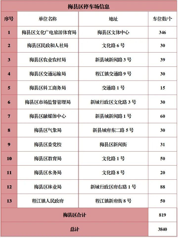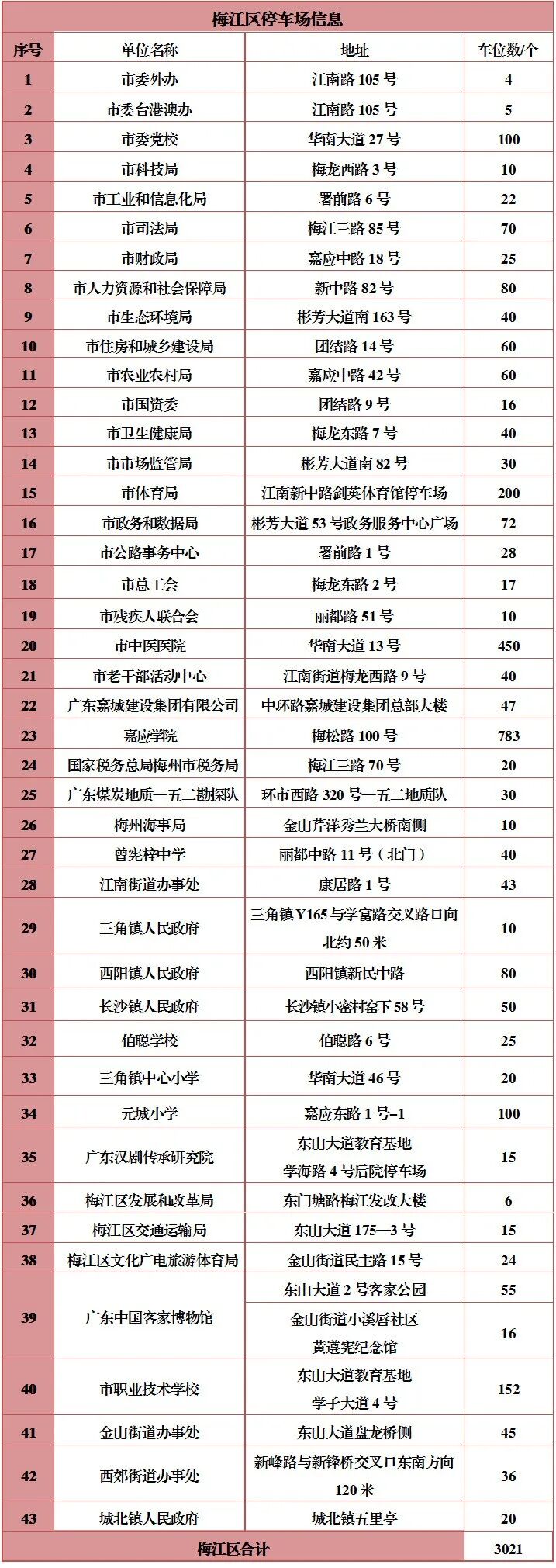梅州城区部分机关事业单位停车场
