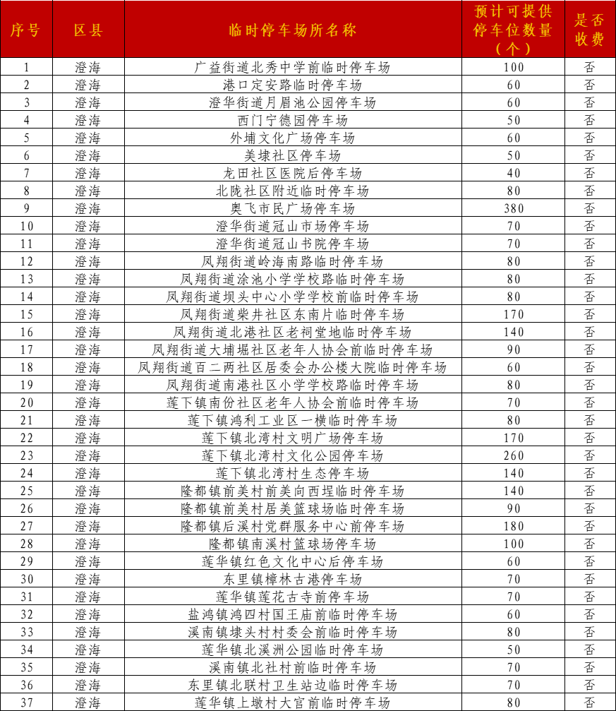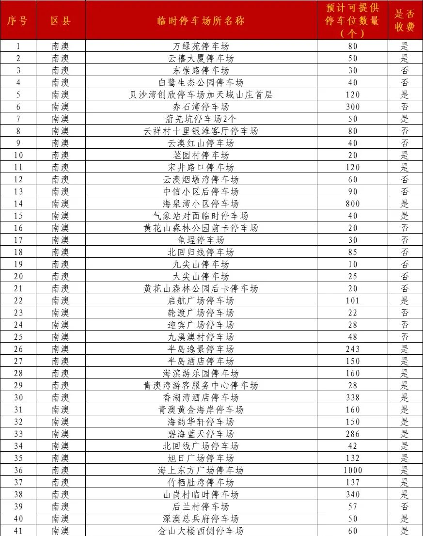 各区县临时停车场如下