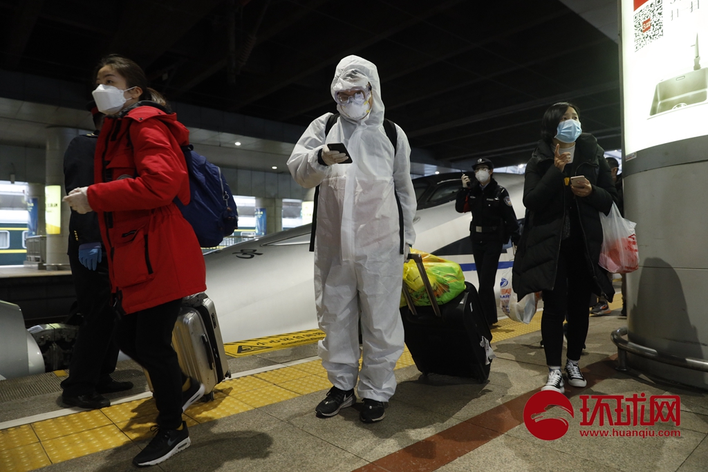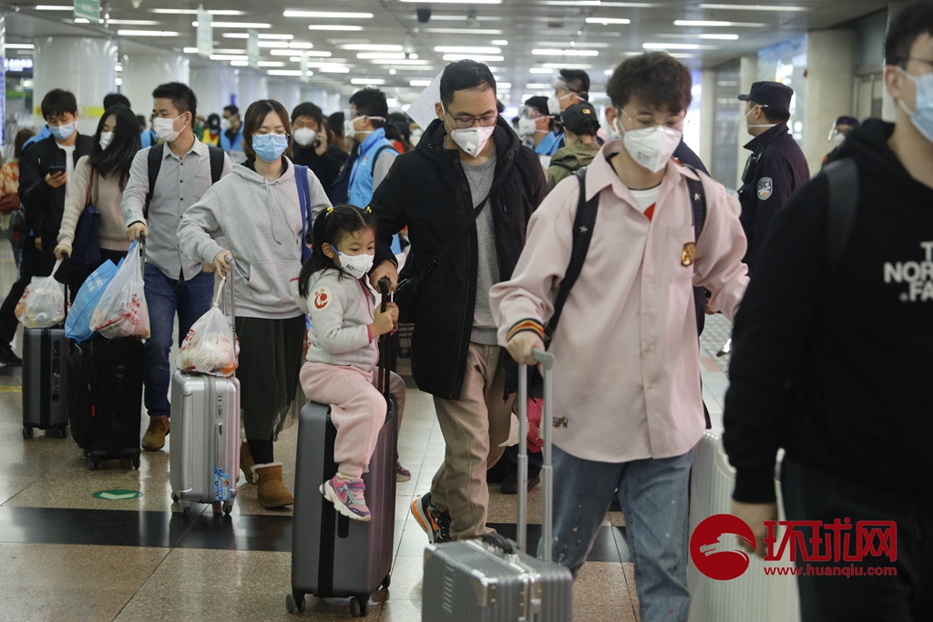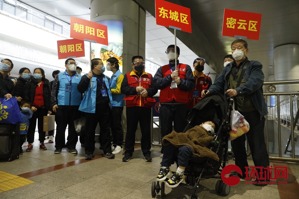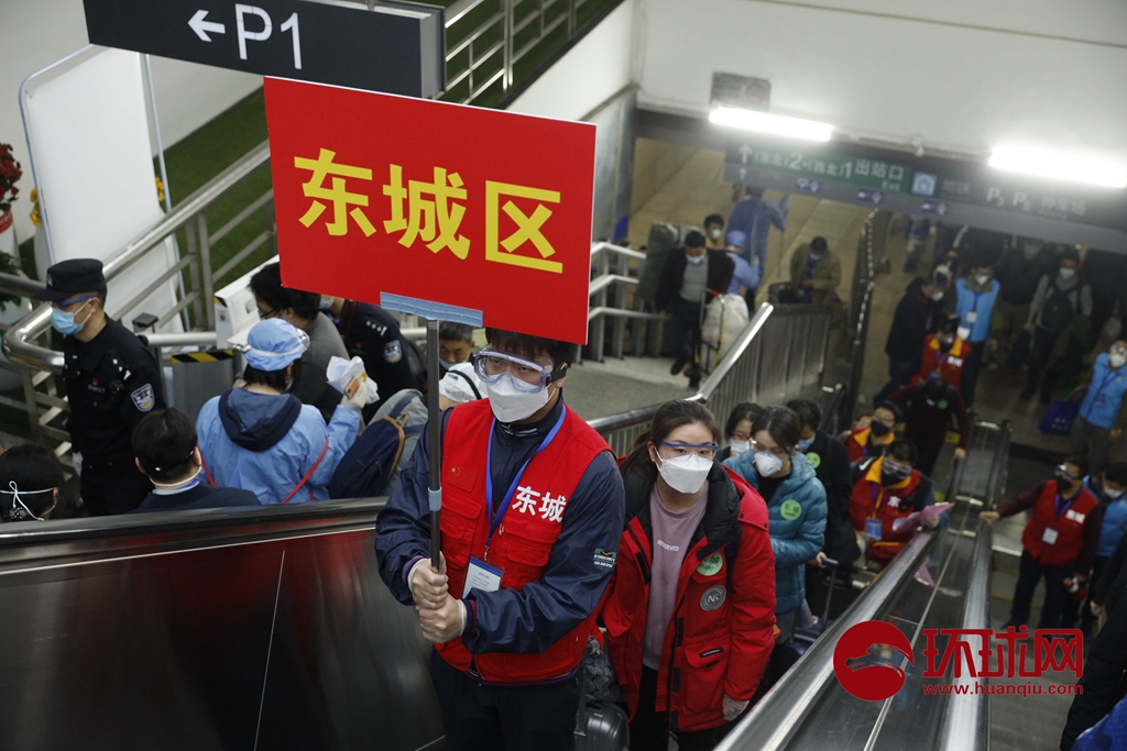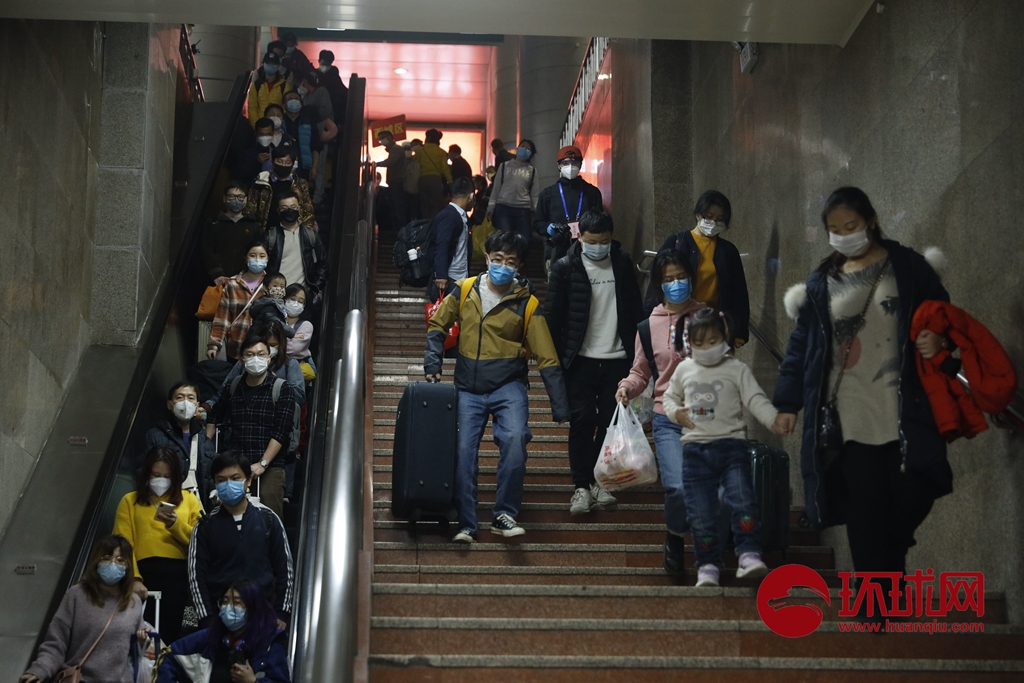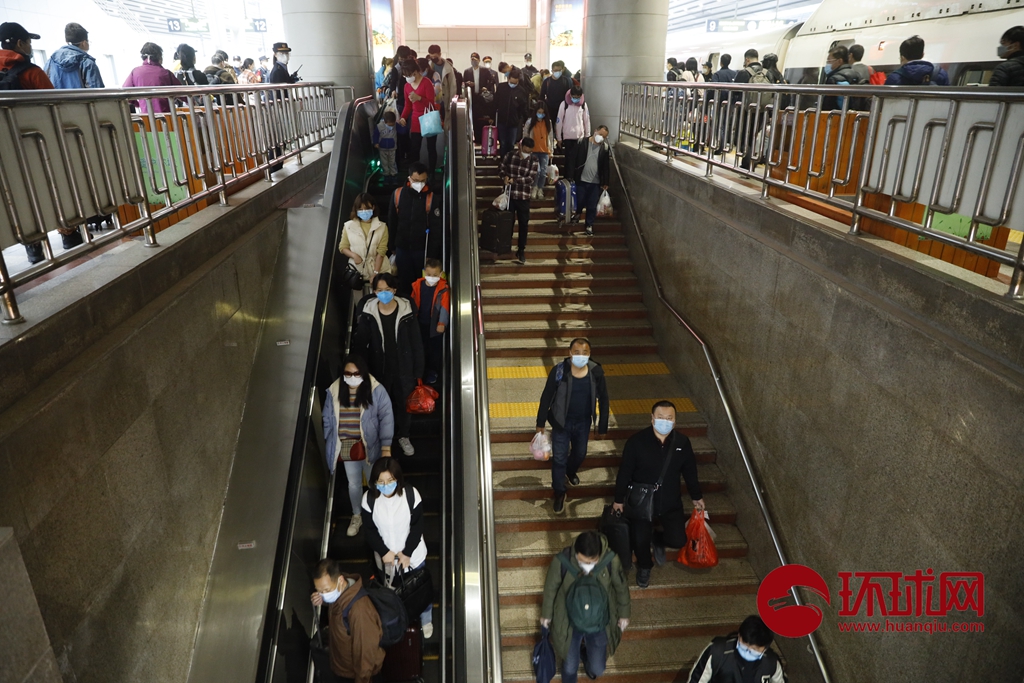 3月25日下午,G488和G4834两趟列车搭载着共877名离鄂返京人员抵达北京西站。(环球时报-环球网记者 李昊/摄)