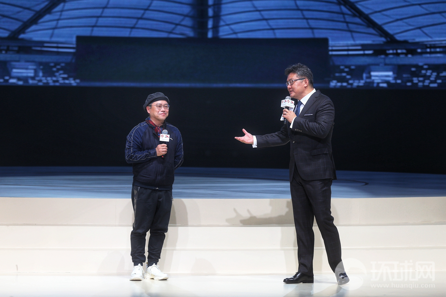 设计师叶锦添现场接受主持人张斌采访,介绍设计理念。