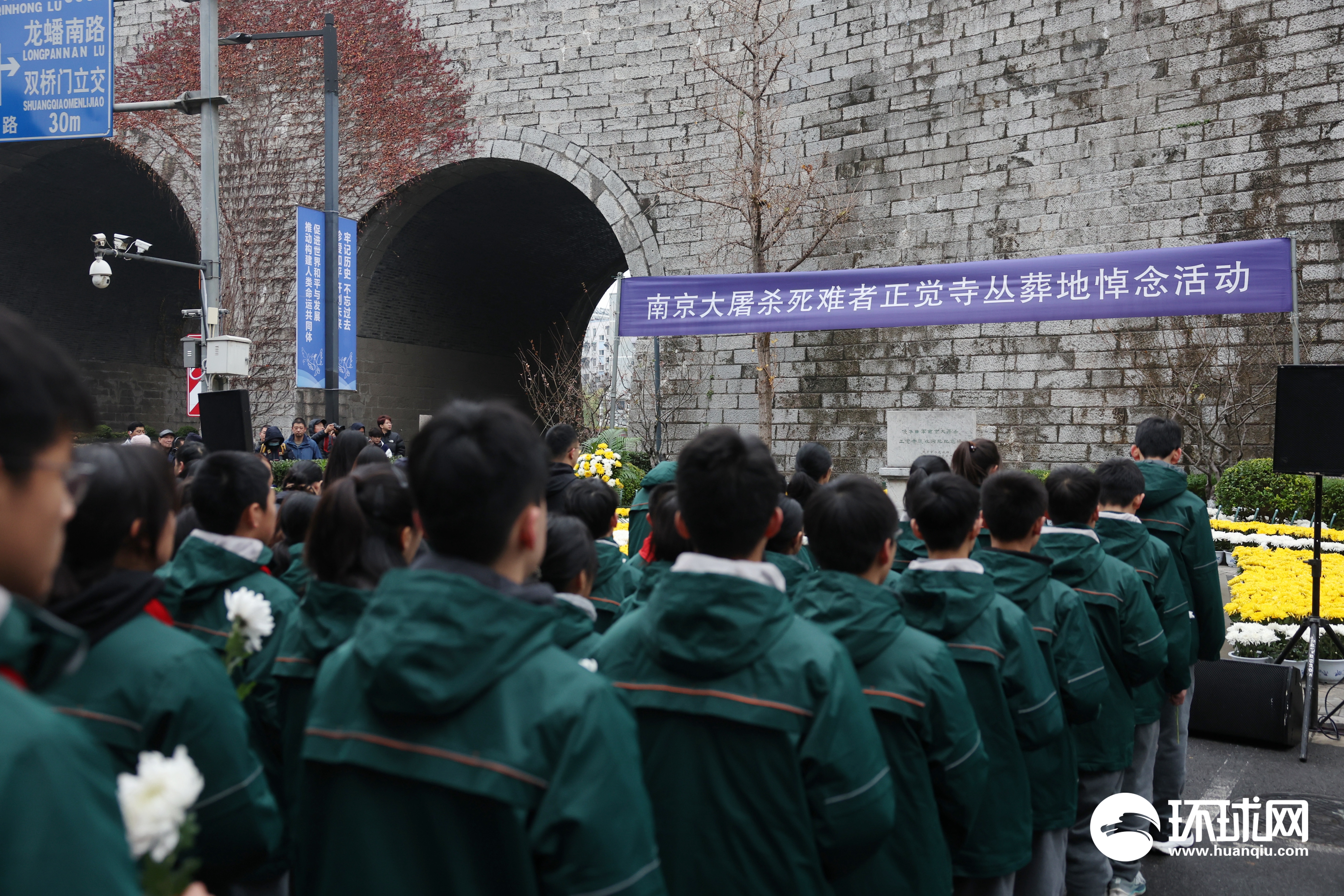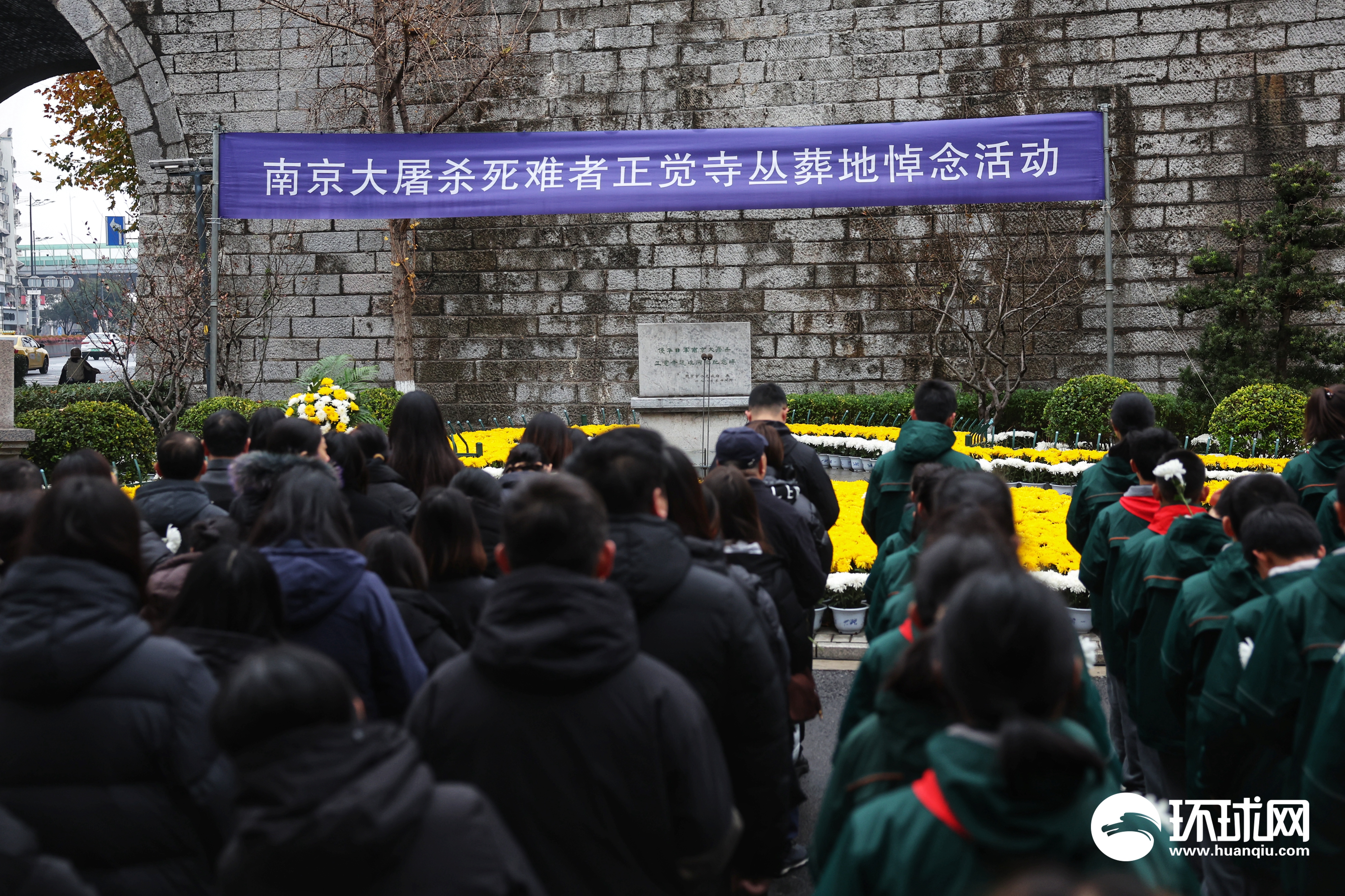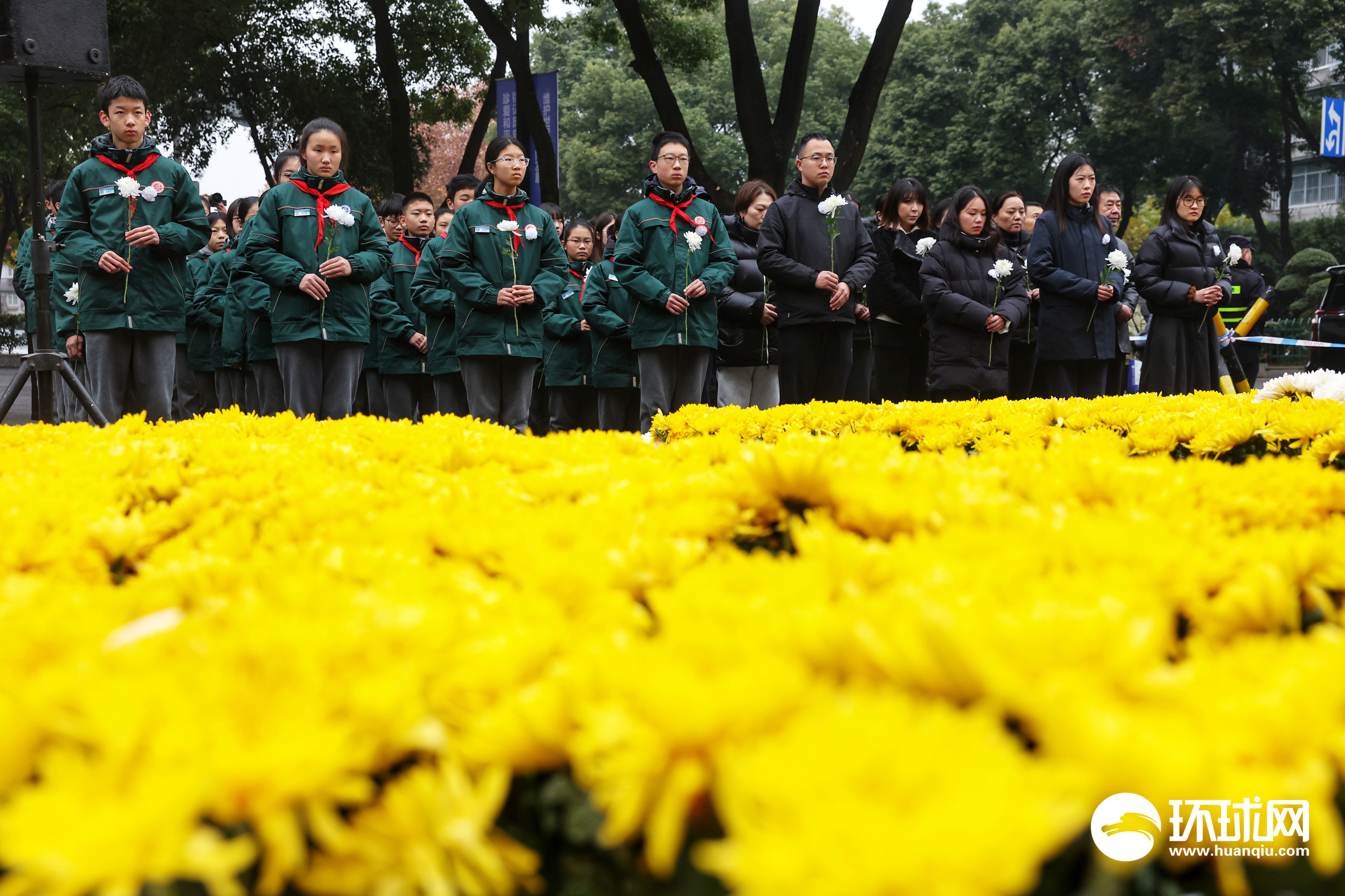 2025年12月13日,南京各界在国家公祭日举行侵华日军南京大屠杀遇难同胞悼念活动。上午10:01,随着防空警报响起,全城默哀,随后人们纷纷向遇难同胞丛葬纪念碑献花致以哀思。环球时报-环球网记者 崔萌 摄