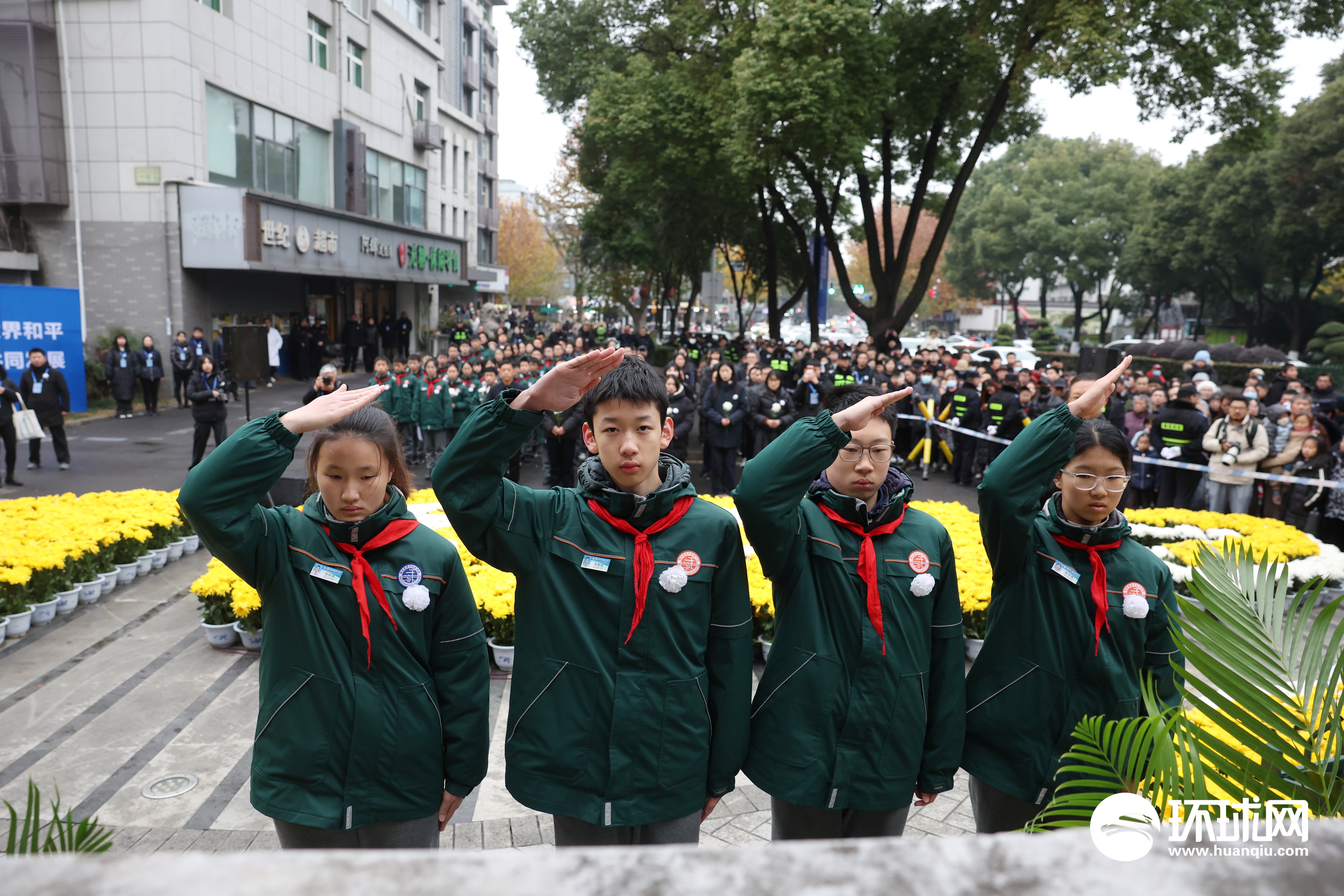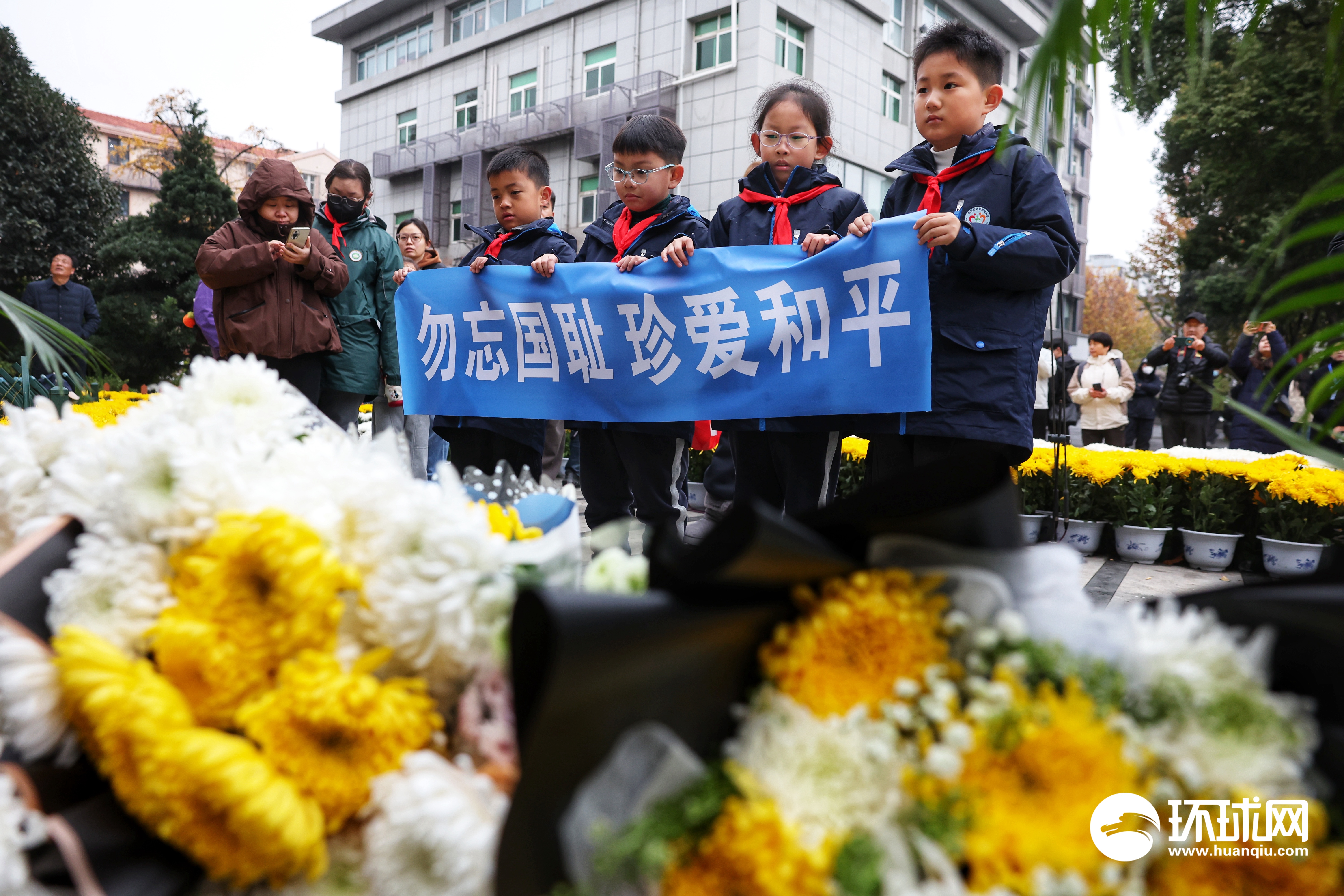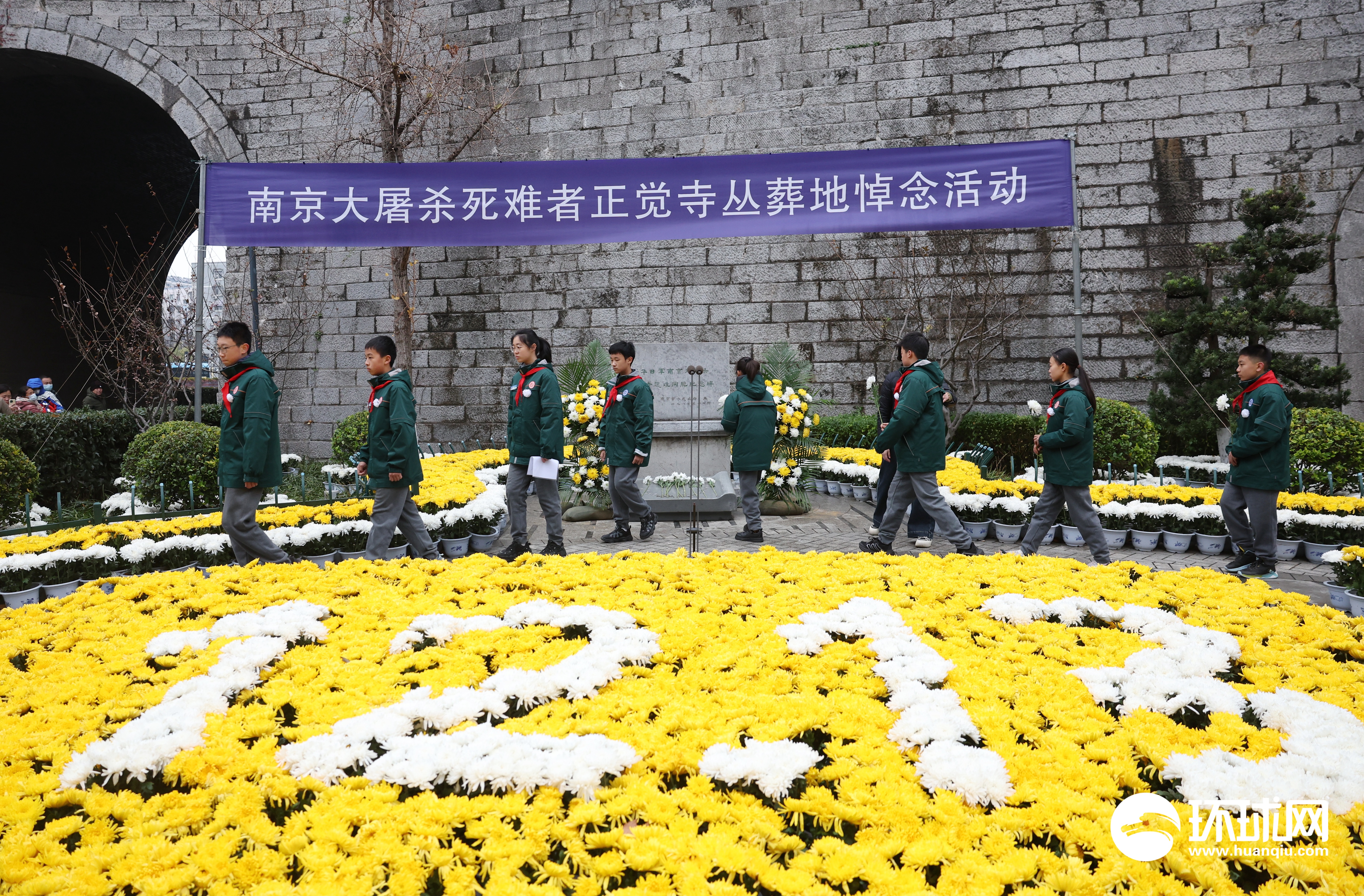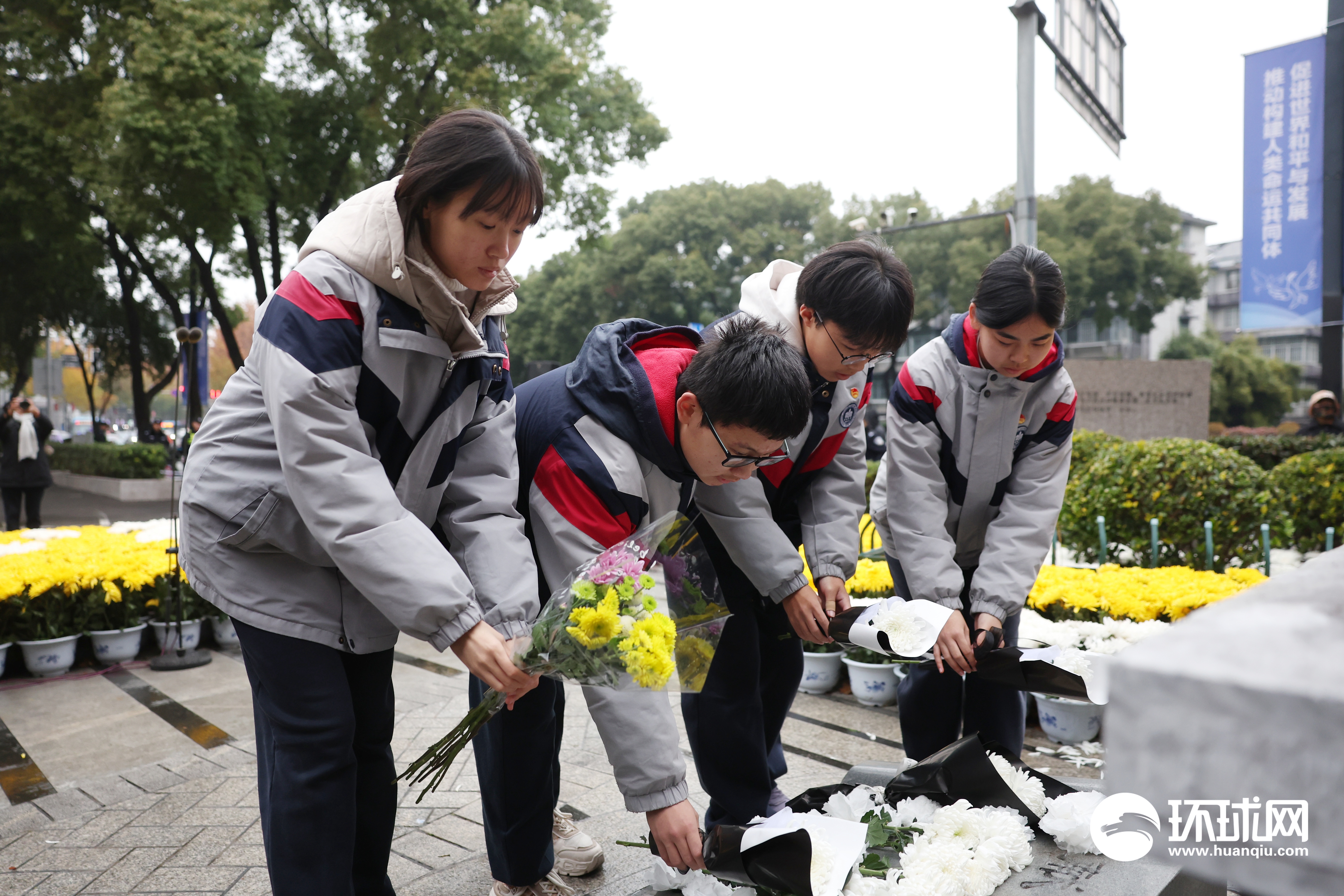 2025年12月13日,南京各界在国家公祭日举行侵华日军南京大屠杀遇难同胞悼念活动。上午10:01,随着防空警报响起,全城默哀,随后人们纷纷向遇难同胞丛葬纪念碑献花致以哀思。环球时报-环球网记者 崔萌 摄