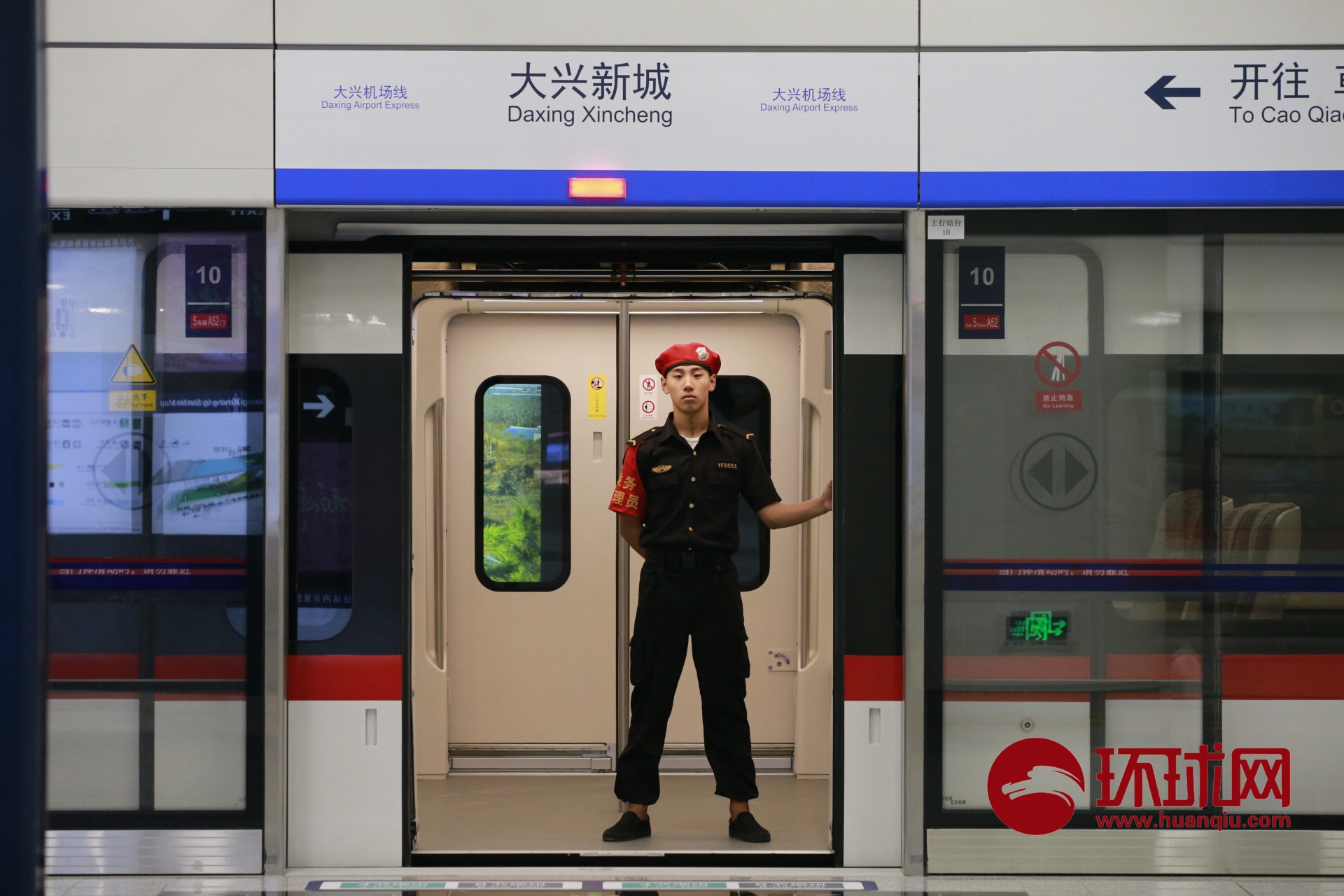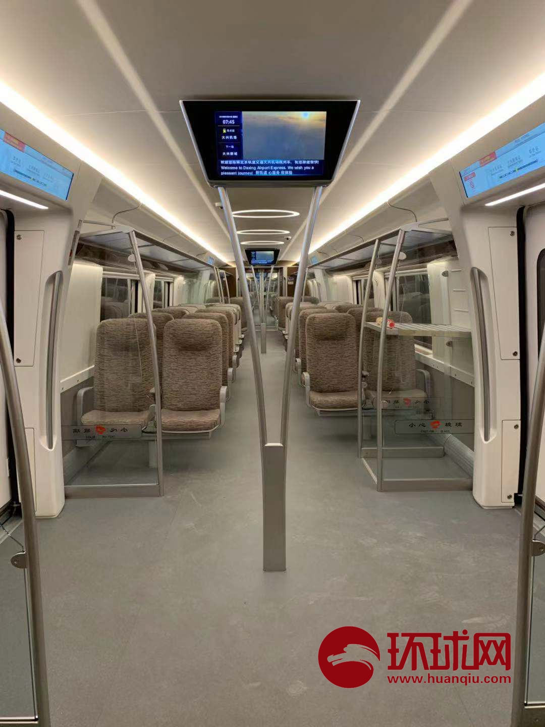 今天大兴机场新闻办带媒体探访北京大兴机场线。从北京10号线草桥站坐上大兴机场线,20分钟就可以到达终点站。目前,机场线还处于测试阶段。届时,机场线和大兴机场将同步运行。(环球时报-环球网记者 涂蕾/摄)