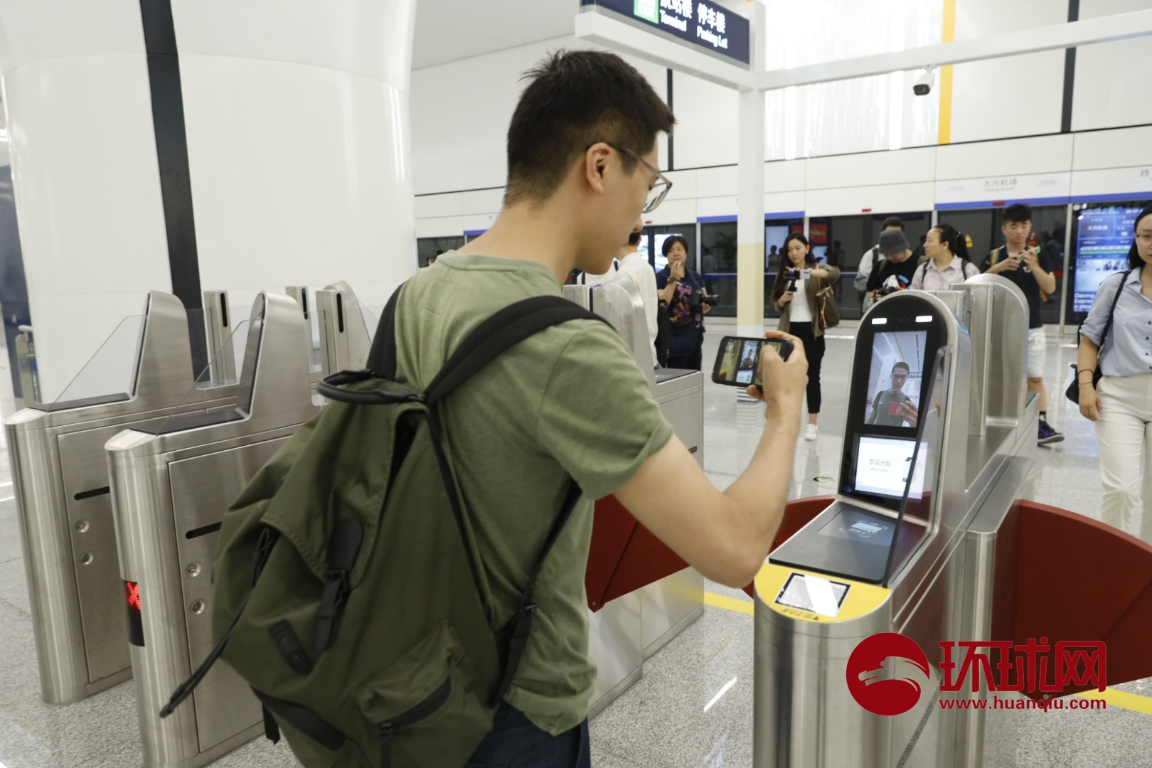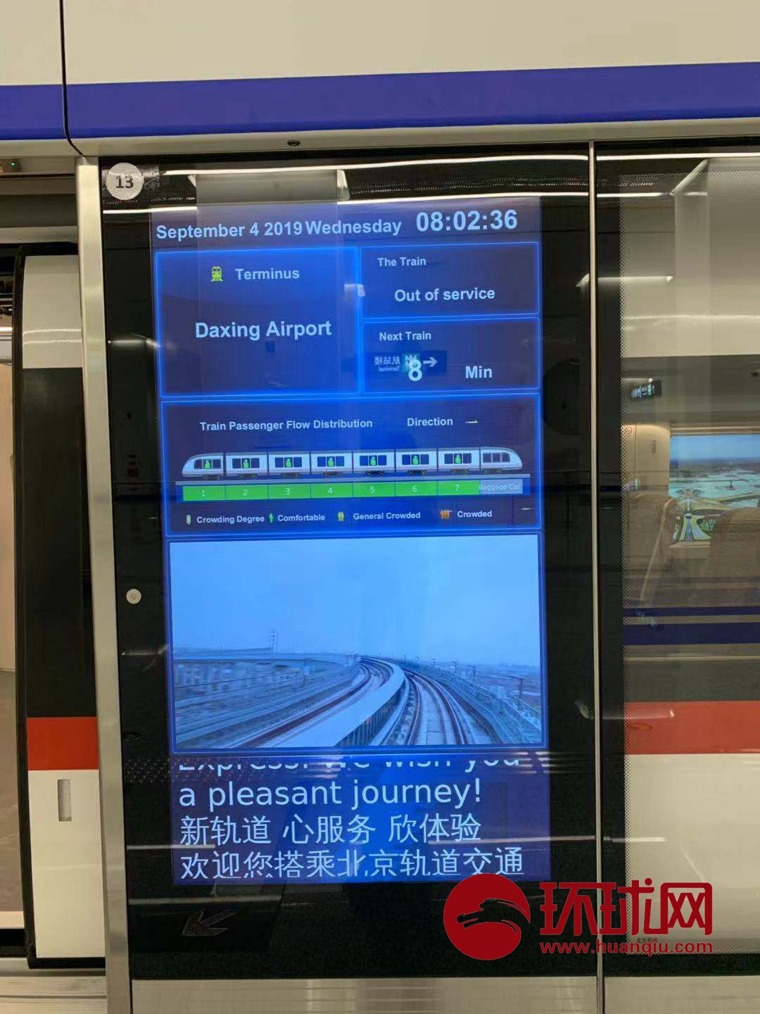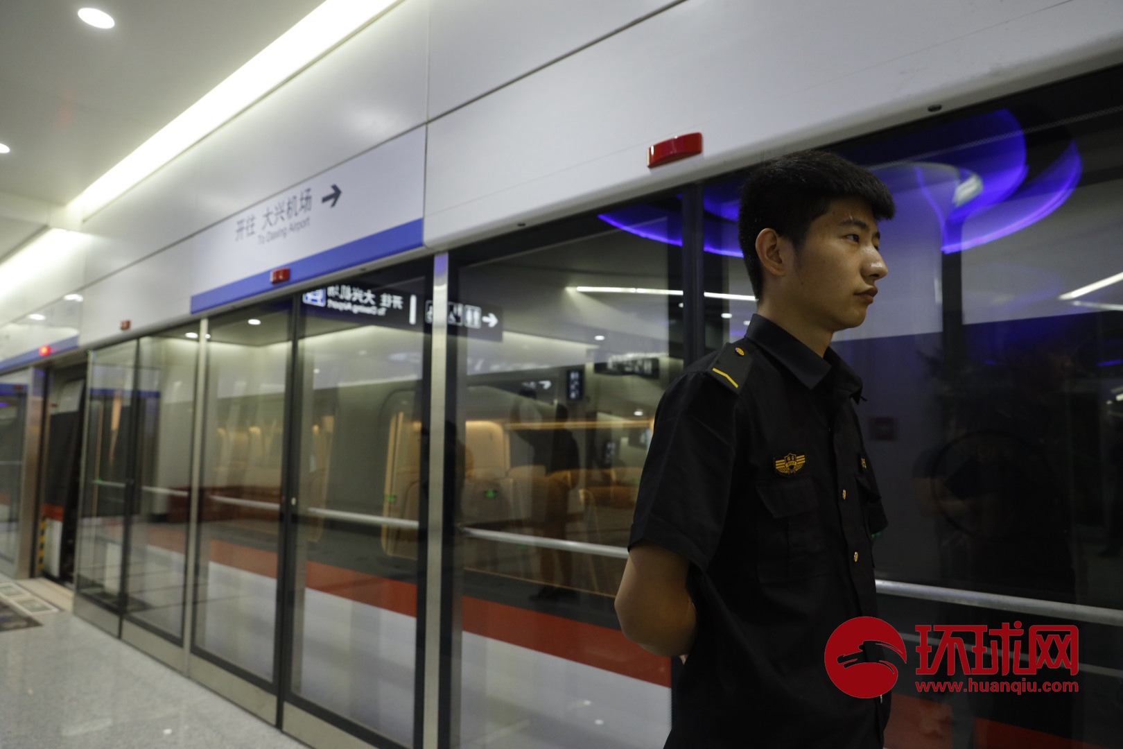 今天大兴机场新闻办带媒体探访北京大兴机场线。从北京10号线草桥站坐上大兴机场线,20分钟就可以到达终点站。目前,机场线还处于测试阶段。届时,机场线和大兴机场将同步运行。(环球时报-环球网记者 李昊/摄)